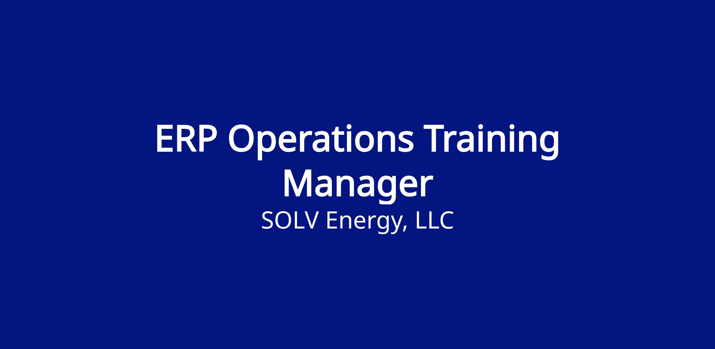 The ERP Operations Training Manager is responsible for designing, developing, and delivering engaging training programs on SOLV Energy’s ERP systems, tailored to role-specific Operations end users. This role ensures that training—whether in-person or virtual—meets defined objectives by leveraging a deep technical understanding of the various systems and their application across enterprise-wide and business unit specific processes. The trainer will collaborate closely with cross-functional teams to align training content with established standards and best practices. Additionally, this position serves as a feedback conduit, identifying gaps in standards and communicating opportunities for improvement discovered during training delivery. The ERP Operations Trainer reports directly to the Director of Project Standards.Job Description:
