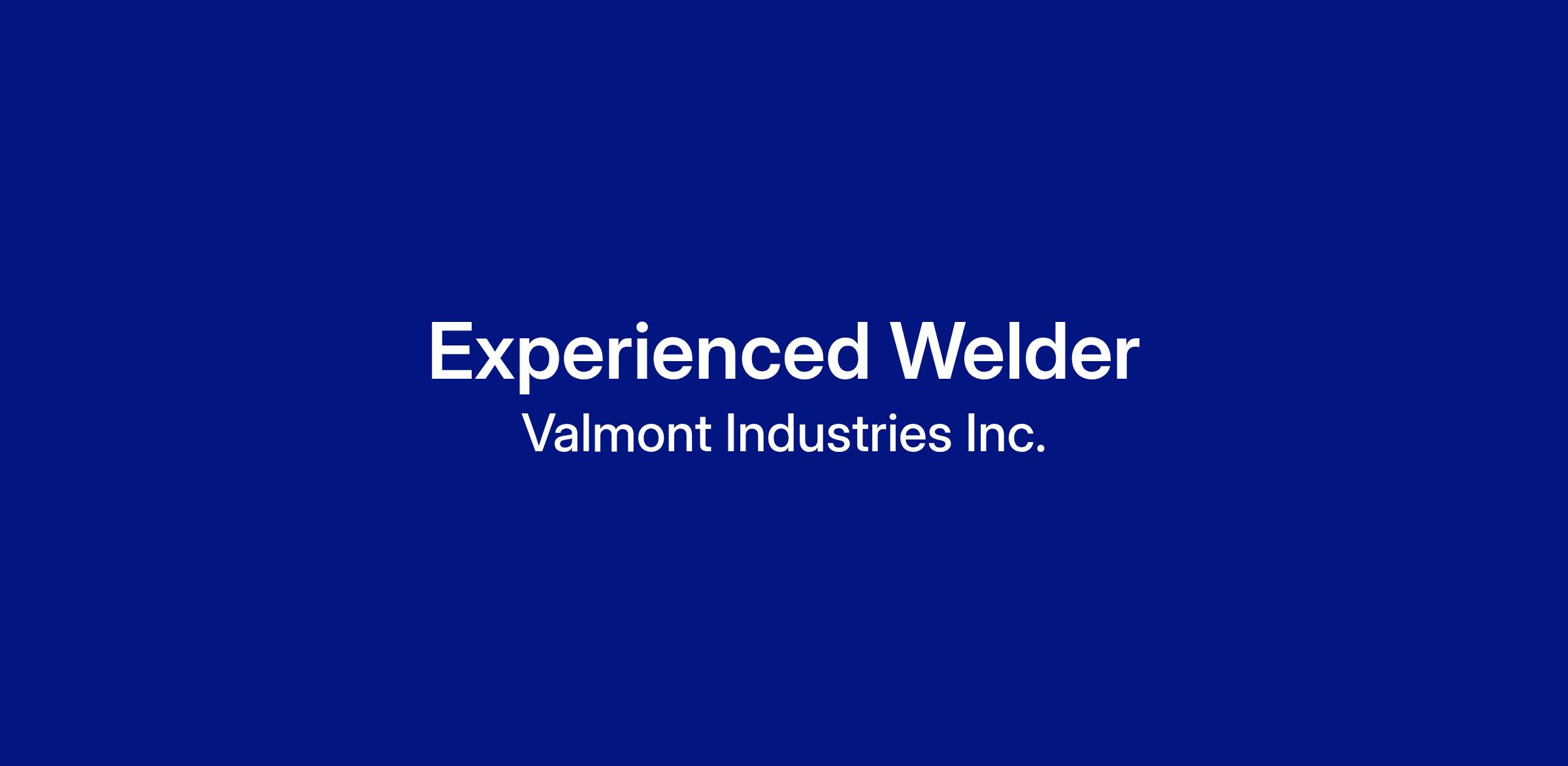 Valmont is currently seeking a highly motivated and talented individual for an experienced Welder position. We are looking for a highly driven individual who will weld metal components together to fabricate or repair products according to layouts, blueprints, or work orders using brazing and variety of arc and gas welding equipment. Additionally, you will…