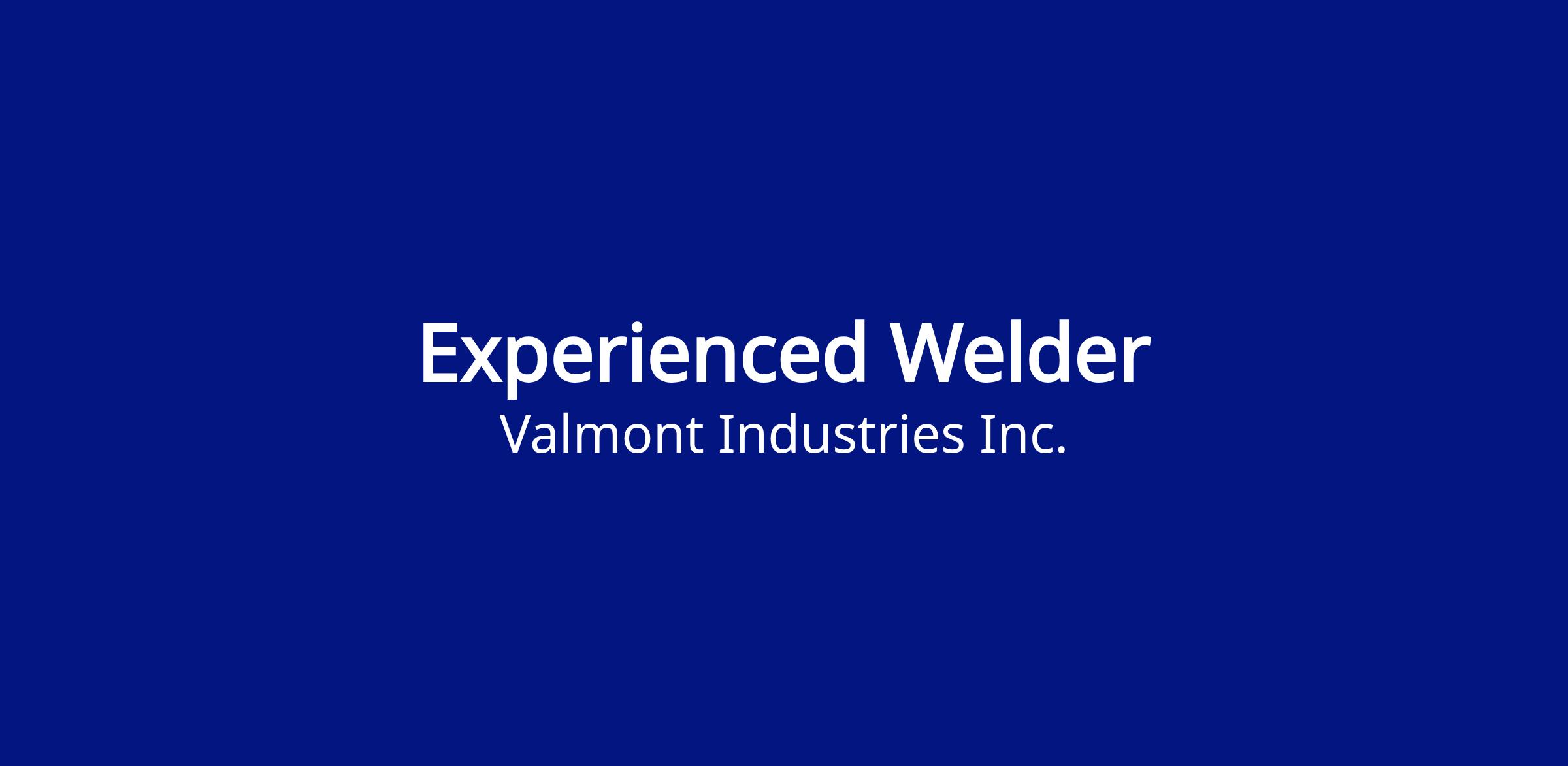 Valmont is currently seeking a highly motivated and talented individual for an experienced Welder position. We are looking for a highly driven individual who will weld metal components together to fabricate or repair products according to layouts, blueprints, or work orders using brazing and variety of arc and gas welding equipment. Additionally, you will…