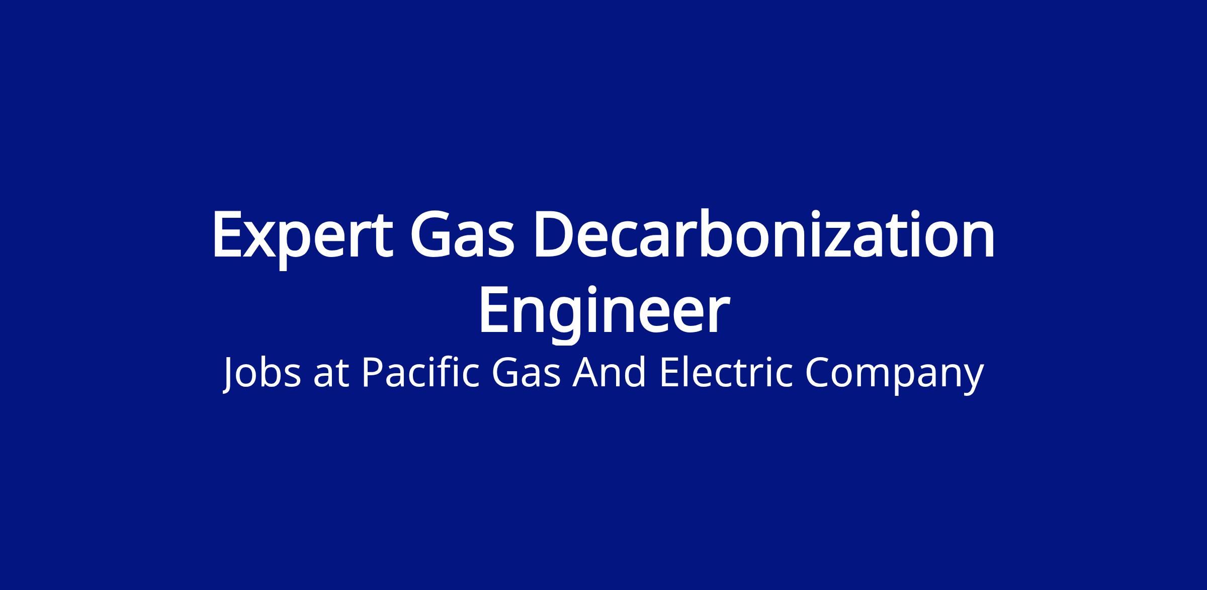 The Gas Decarbonization Engineer, part of the Decarbonization Strategy team, will lead technology identification, evaluation, technical analysis, and project management activities that advance commercial and industrial decarbonization in support of PG&E’s net‑zero emissions goals. This role focuses on assessing and developing cost-effective solutions to decarbonize the PG&E gas system (front of meter) and customer end‑use equipment (behind the meter).