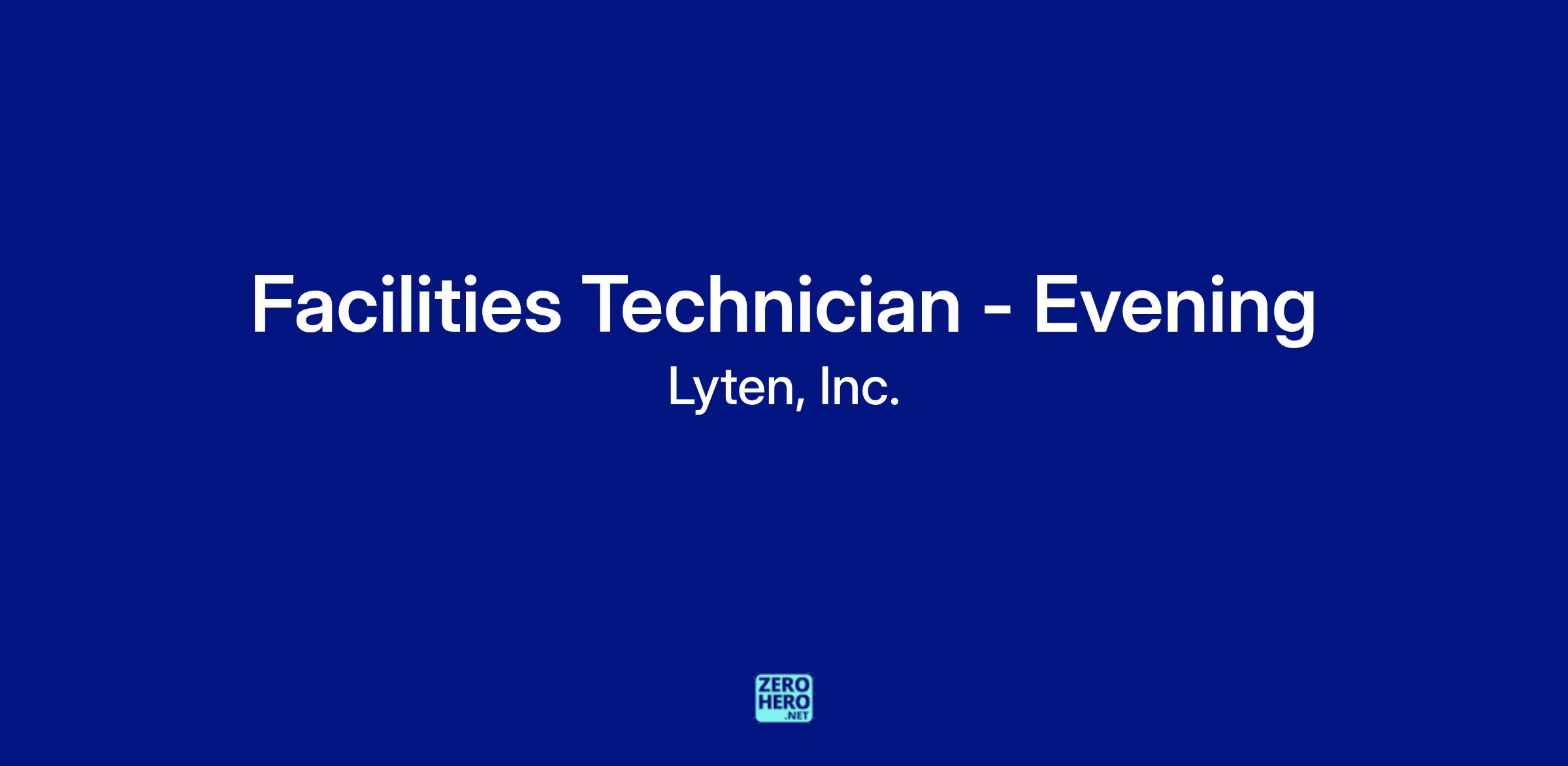 The Facility Technician will support evening operations at Lyten’s Fremont and San Jose, California facilities. This is an onsite position. The technician ensures that Facility maintenance procedures are properly followed. Performs basic Facilities maintenance tasks that can be accomplished working independently.