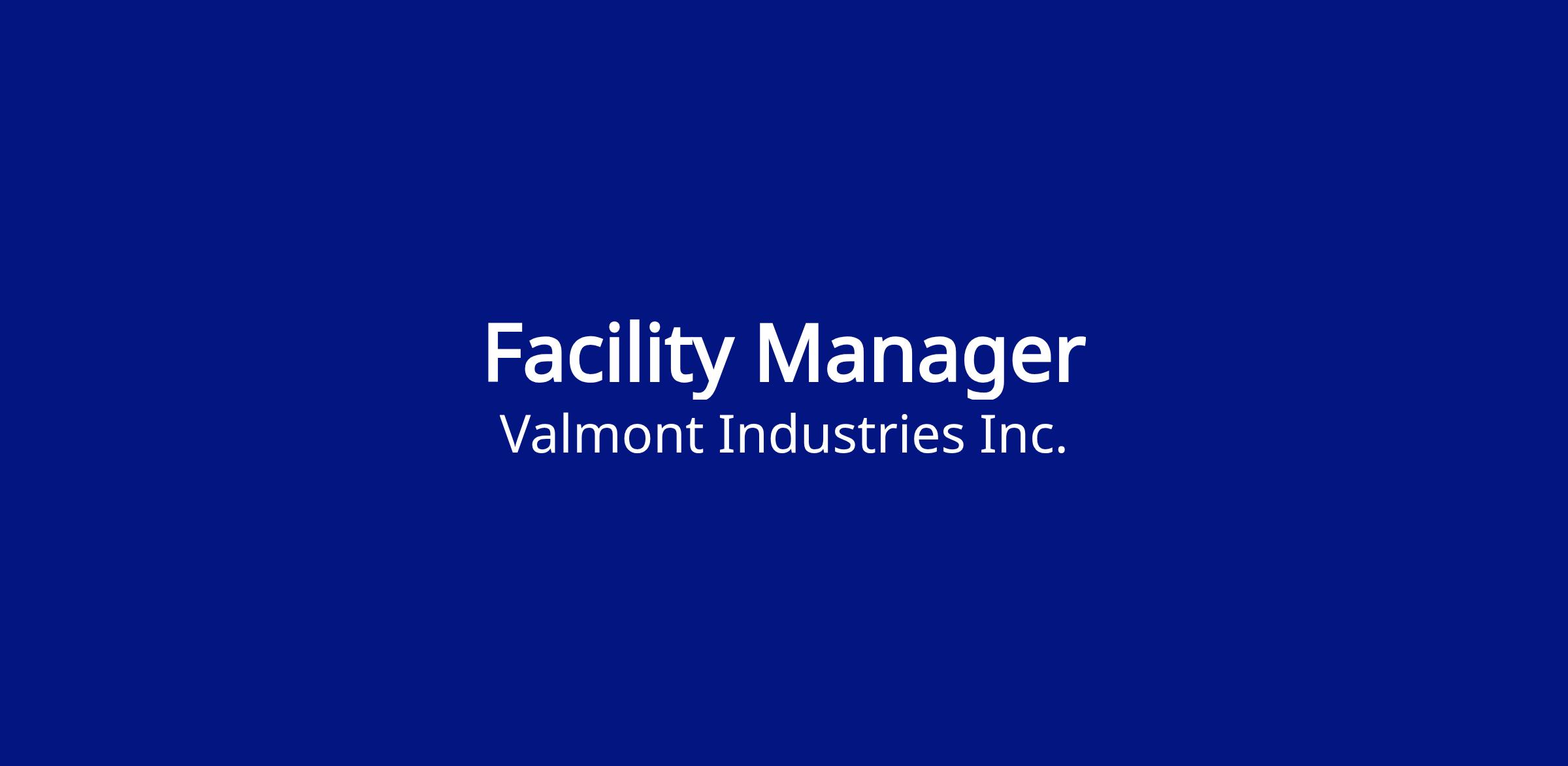 The Facility Manager will serve as liaison between contractors and Valmont Industries regarding construction to new or existing facilities and/or utilities. The incumbent will work closely with Project, Plant, and Manufacturing Engineers to ensure collaboration on schedules and project management. The Facility Manager will be involved in securing and reviewing project and equipment quotes, presenting capital projects for approval and managing projects through to completion. The Facility Manager will be strategic and forward thinking with the ability to develop and lead our infrastructure to the best in class. The incumbent will provide oversight and leadership to Food Services, Protection Services and Administrative Support (including Voice Communication Operator), Facility Maintenance and Engineering teams, Receiving and MRO.