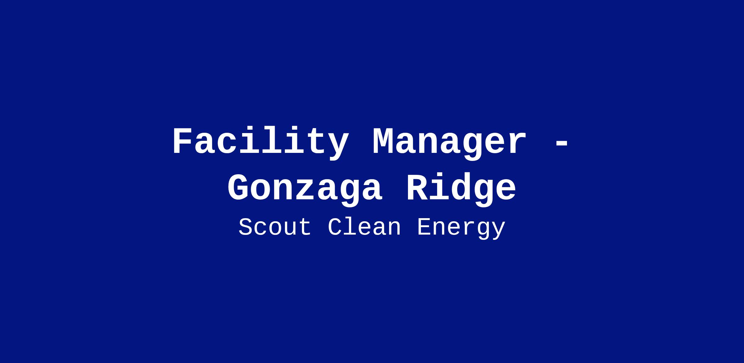 The Facility Manager will oversee all aspects of operations and maintenance at Scout’s Gonzaga Ridge wind generating facility, including turbines, high voltage substation equipment, collection systems, and balance-of-plant activities.