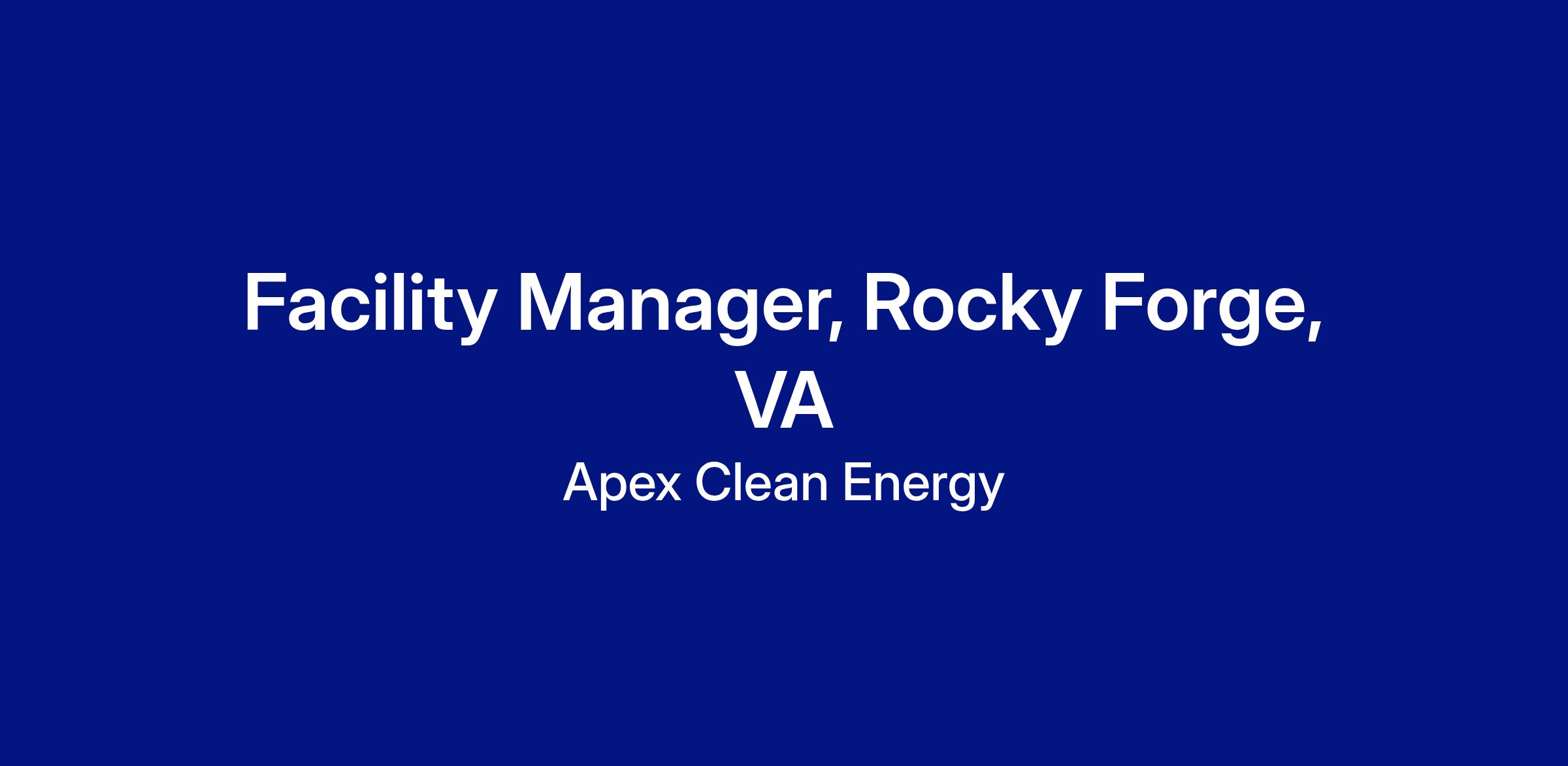 Apex is seeking experienced Facility Manager to oversee daily operations of our utility‐scale wind farm in Botetcourt County, VA. As the single point of contact for Apex at the site level, this position is critical to the operational success of our asset.