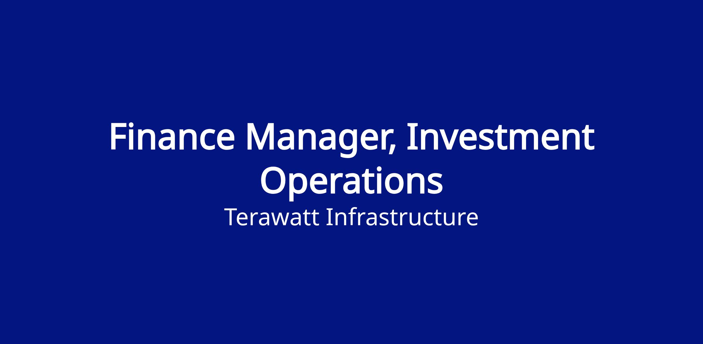 \nWe are seeking a highly organized and execution-oriented Finance Manager to own and scale TeraWatt’s investment governance processes. This role partners closely with the CFO and cross-functional leaders to ensure investment decisions are disciplined, well-structured, and aligned with company priorities.
