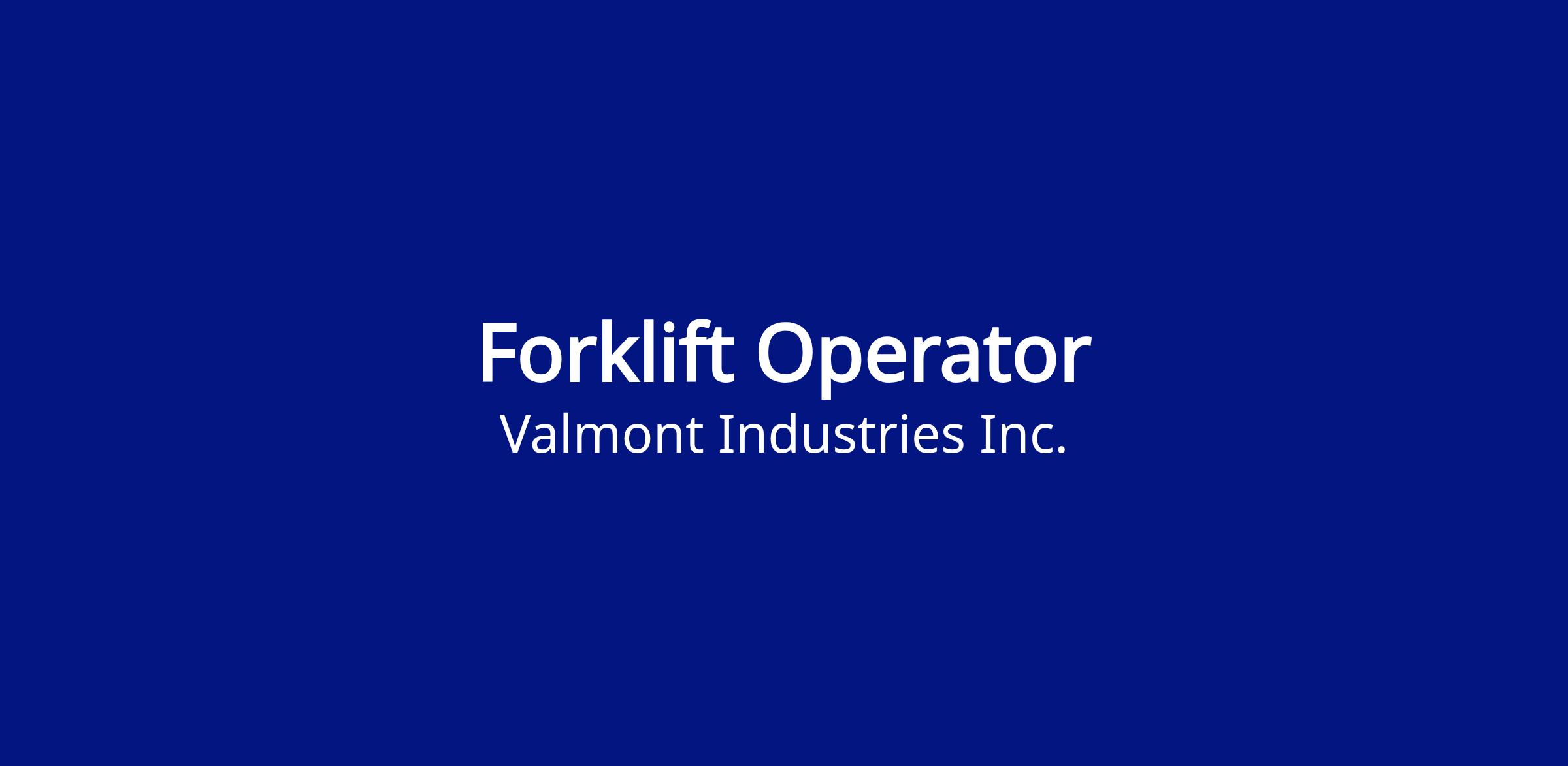 Valmont is currently seeking a highly motivated and talented individual for the Forklift Operator position in the Coatings Division. We are looking for a highly driven individual that will operate a forklift and other lifting and moving equipment in a safe and efficient manner to deliver on-time, high quality Valmont products.