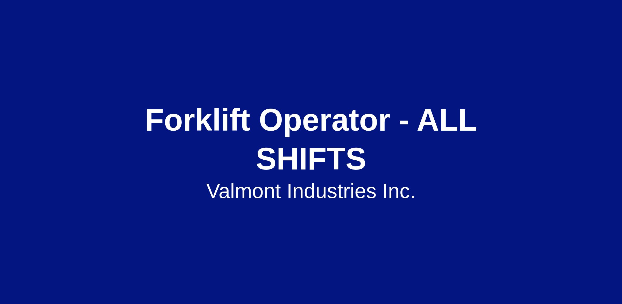 Valmont is currently seeking a highly motivated and talented individual for the Forklift Operator position in the Coatings Division. We are looking for a highly driven individual that will operate a forklift and other lifting and moving equipment in a safe and efficient manner to deliver on-time, high quality Valmont products.