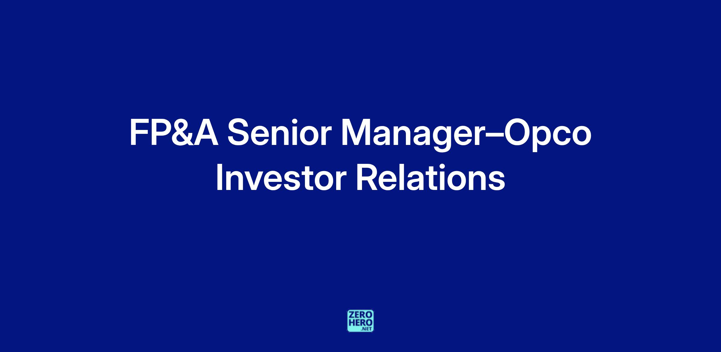 The finance team is seeking a “FP&A Senior Manager – Opco Investor Relations” with experience leading a high performing team in a public company or large private company environment. Experience communicating successfully with internal and external stakeholders (Executives, Investors) is key. FP&A experience and familiarity leading teams during budget and forecast processes is key.