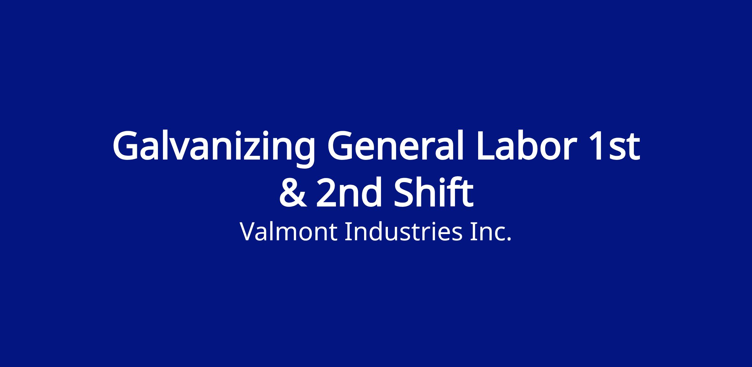 Valmont is currently seeking a highly motivated and talented individual for the General Shop Help position in our Claremore Oklahoma Coatings Division. We are looking for highly driven individuals that will prepare products and materials for the galvanizing process by hanging angle on spreader bars, staging tubular products, and preparing small parts for galvanizing.