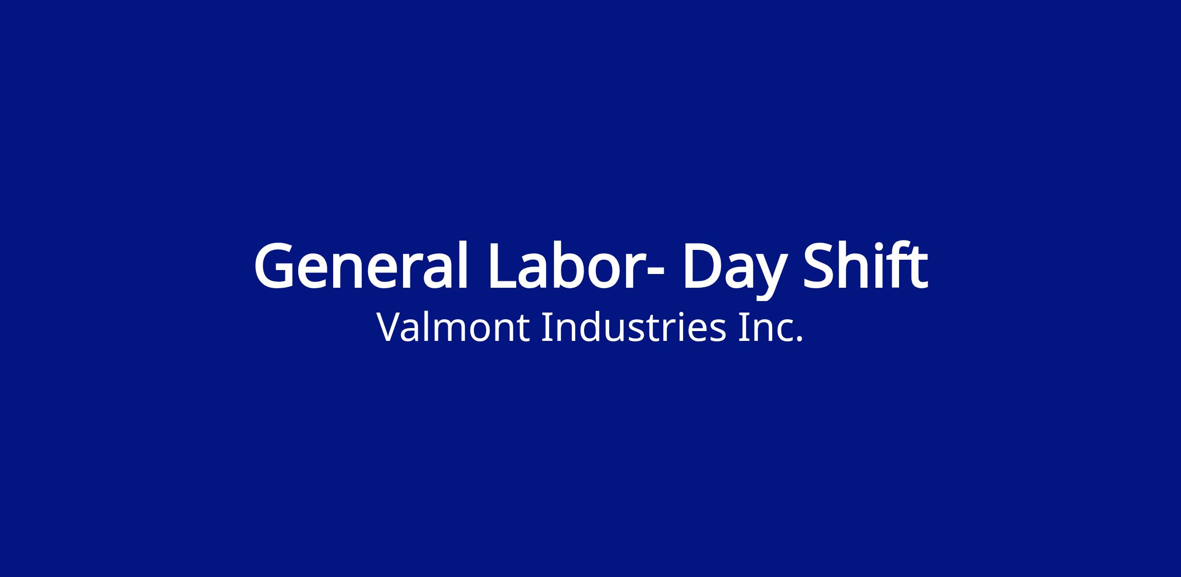 Valmont is currently seeking a highly motivated and talented individual for the General Labor position in the Global Utility Division. We are looking for a highly driven individual that will assist with the kitting of small parts and the delivery of these parts to the appropriate locations in production. This position will also do other duties as assigned to support production. Additionally, you will…