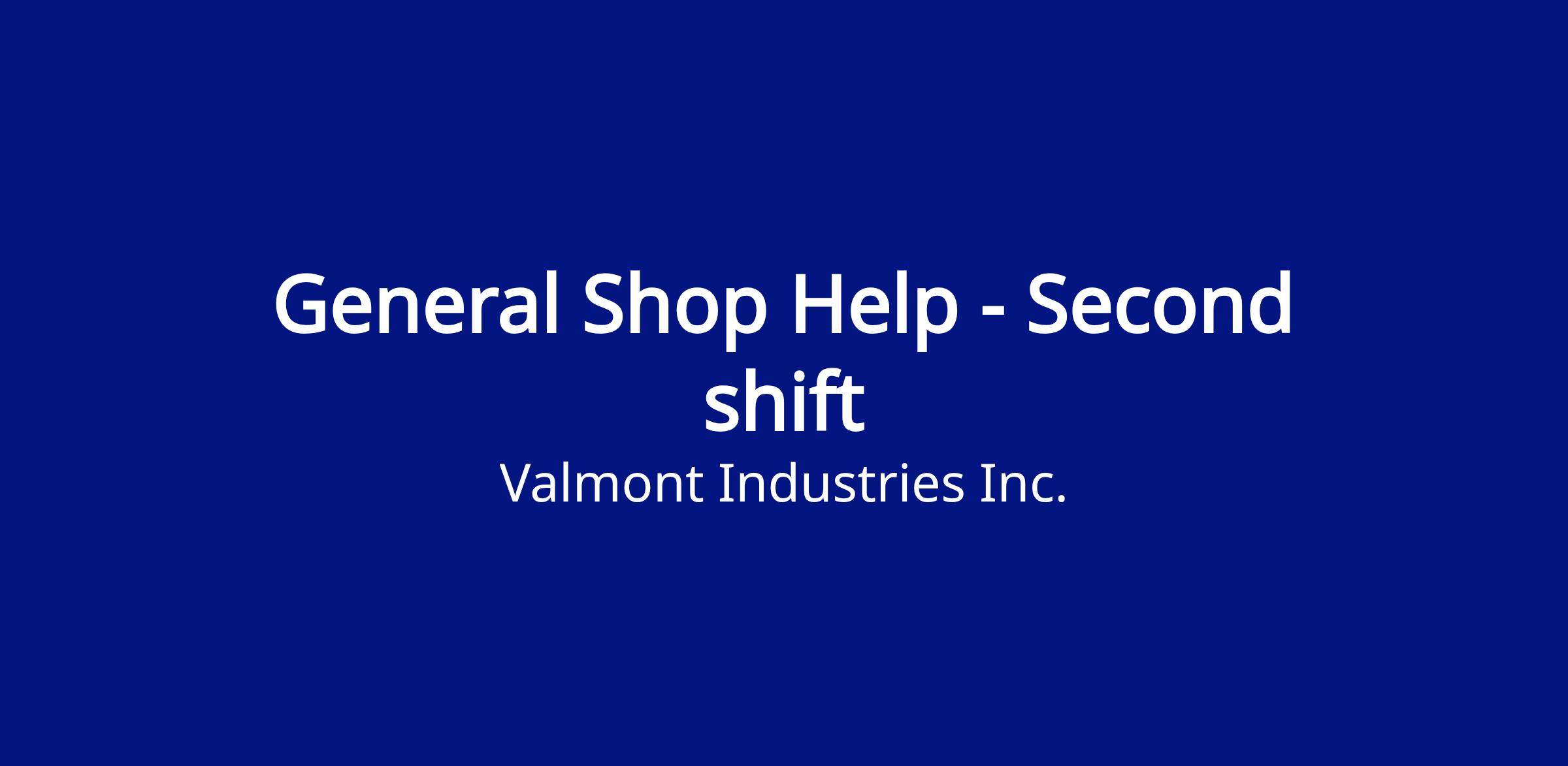 Valmont Industries is currently seeking General Shop Helpers for a Second Shift position (3:00 p.m. to 11:30 p.m., Monday–Friday) at our Coatings Site in Miami.