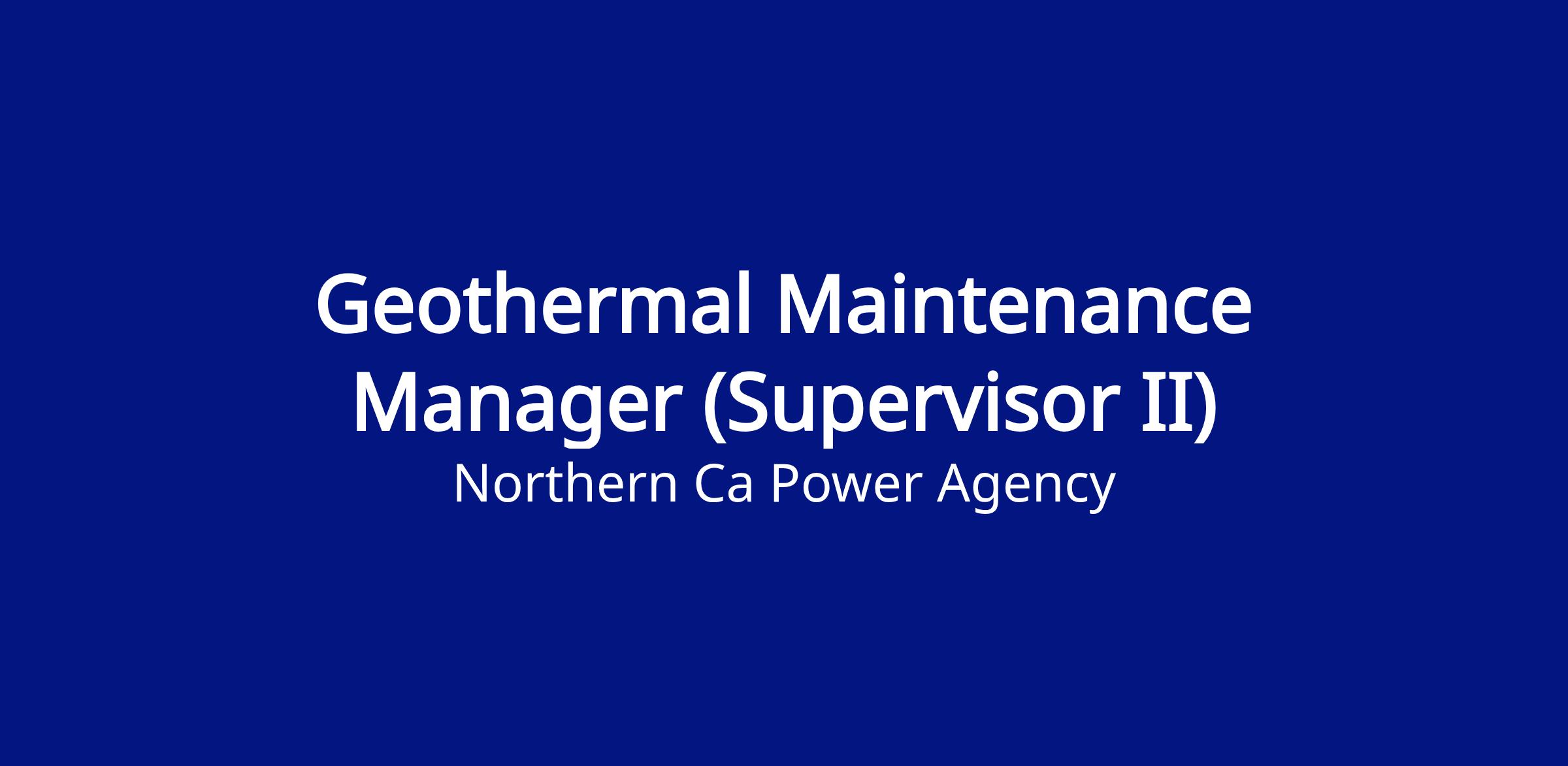 The Maintenance Manager oversees personnel, safety, environmental, and budgetary aspects of NCPA’s Geothermal (GEO) Facilities. Supervise and lead a diverse technical workforce. Roles may be split with a separate Operations Supervisor and associated plant staff. This position ensures that the GEO power plants and facilities are operated in a safe, reliable, and efficient manner.