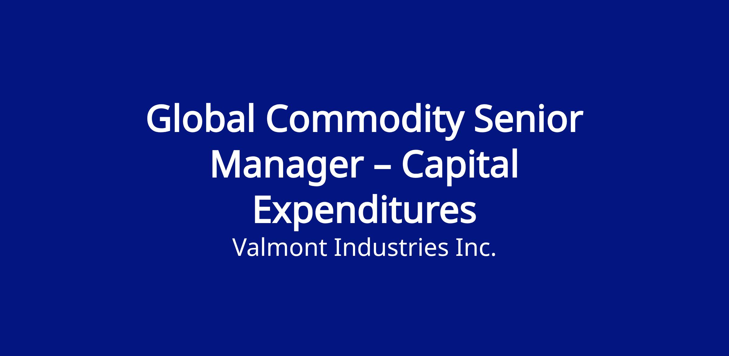The Global Commodity Senior Manager leads aspects of the Global Supply Management process for Capital Expenditures (CapEx). This position works to identify and drive productivity throughout the CapEx category. This position networks with Valmont facilities and cross-functional teams (Operations, Engineering, Quality, Project Management), jointly building a strong project funnel to support Valmont production. The role spearheads sourcing activities on existing and future construction products, as well as all production/facility equipment. This position also works to review the existing supply base and will evaluate suppliers from a GME (Grow, Maintain, Exit) perspective. The Global Commodity Senior Manager – CapEx works to improve payment terms with our suppliers and reduce Valmont exposure through robust service/material agreements.