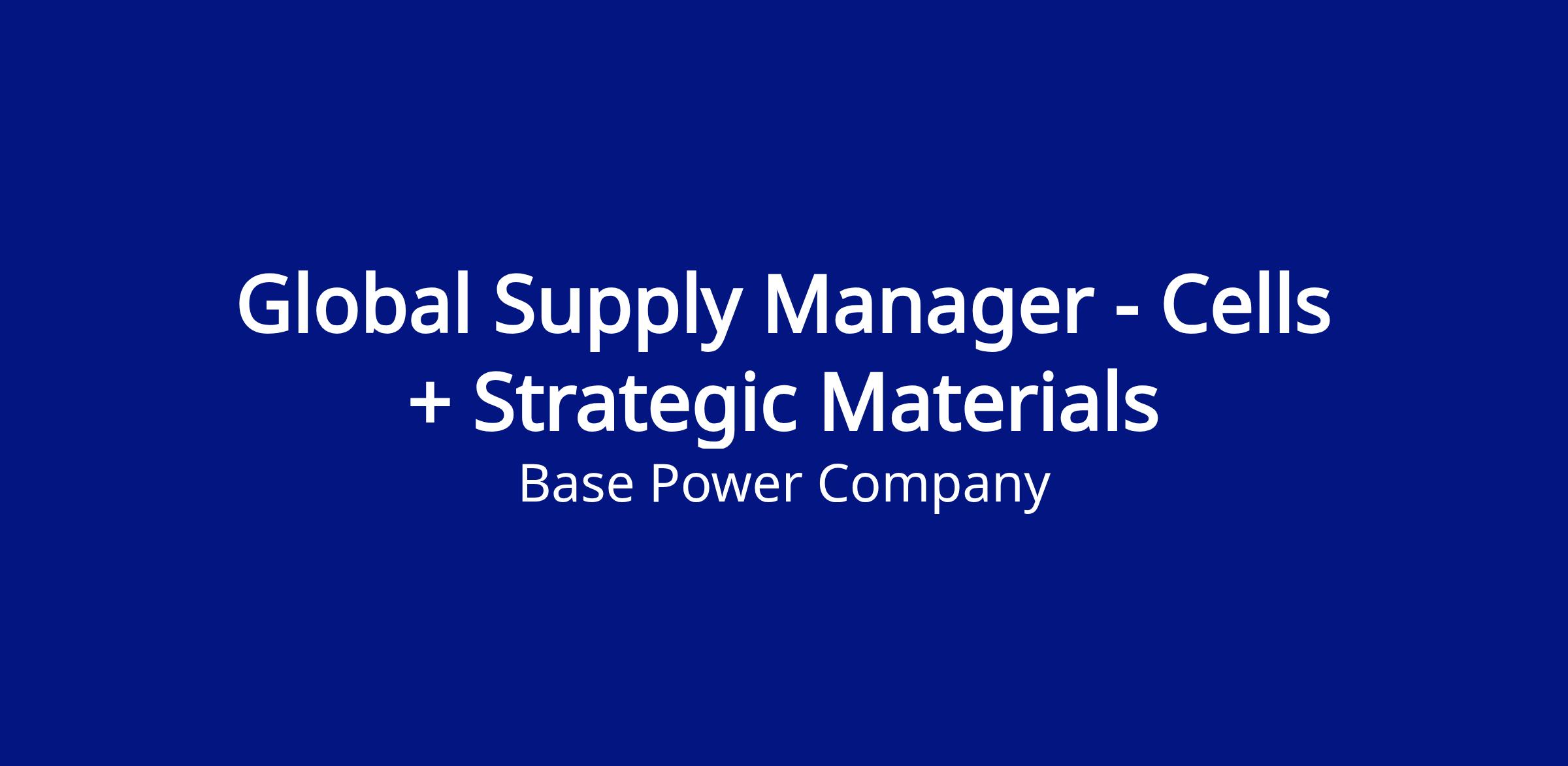 Base is looking for a Global Supply Manager to source and own supplier relationships, support new and existing product development and manufacture, and to implement industry-leading sourcing strategy. This role will collaborate closely with engineering, manufacturing, and logistics teams to execute our product roadmap. The primary scope of this role is battery cells and strategic materials - the single largest cost driver in every Base system and the commodity with the most complex, geopolitically concentrated supply chain in the industry. This is a high impact role requiring deep fluency in cell chemistry, upstream raw material markets, and long-term supply strategy.