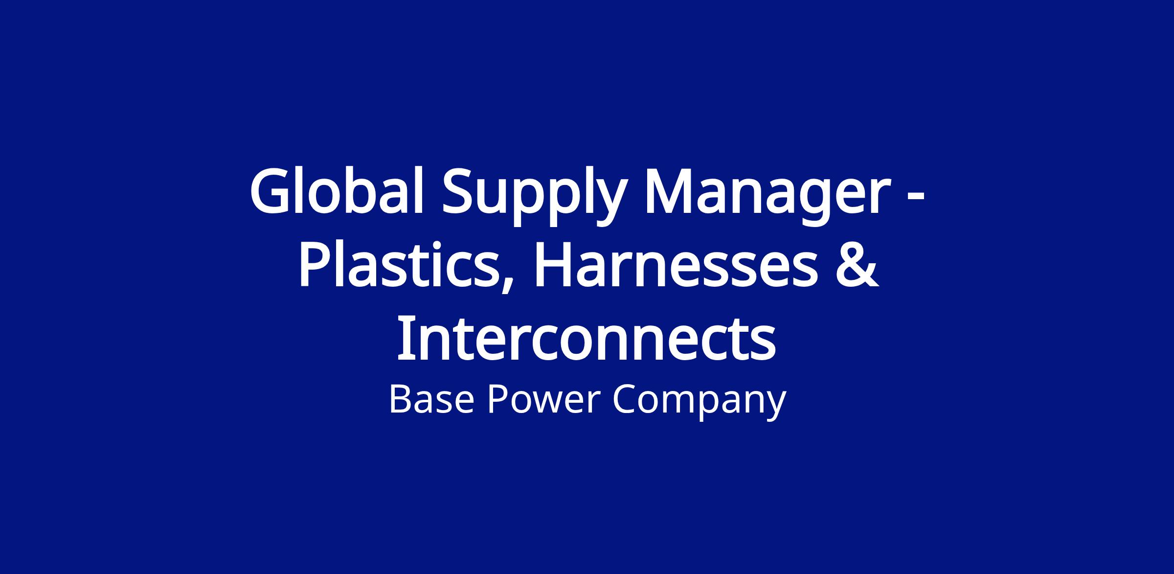 Base is looking for a Global Supply Manager to source and own supplier relationships, support new and existing product development and manufacture, and to implement industry-leading sourcing strategy. This role will collaborate closely with engineering, manufacturing, and logistics teams to execute our product roadmap. The primary scope of this role is plastics, harnesses, and interconnects - the injection-molded components, wire harnesses, cable assemblies, and connectors that give every Base system its structure and carry power and signal from end to end.