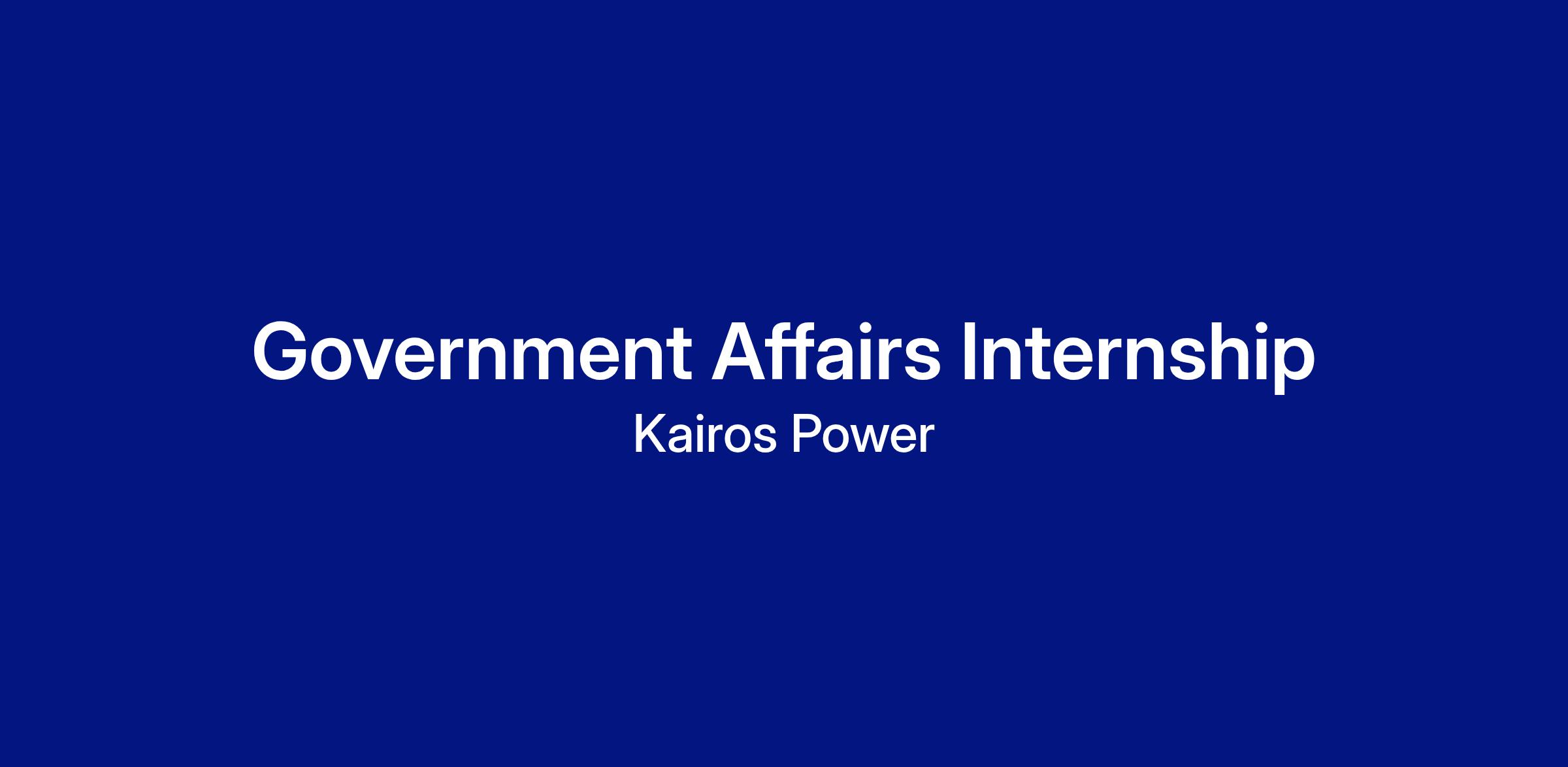 Kairos Power is seeking a highly motivated Government Affairs Intern to support our state, federal, and local policy and stakeholder engagement efforts. This role is ideal for a candidate with a strong interest in energy policy, nuclear technology, and experience in government or public affairs. This intern will work closely with the Government Affairs team to track policy developments, conduct research and support external engagement.