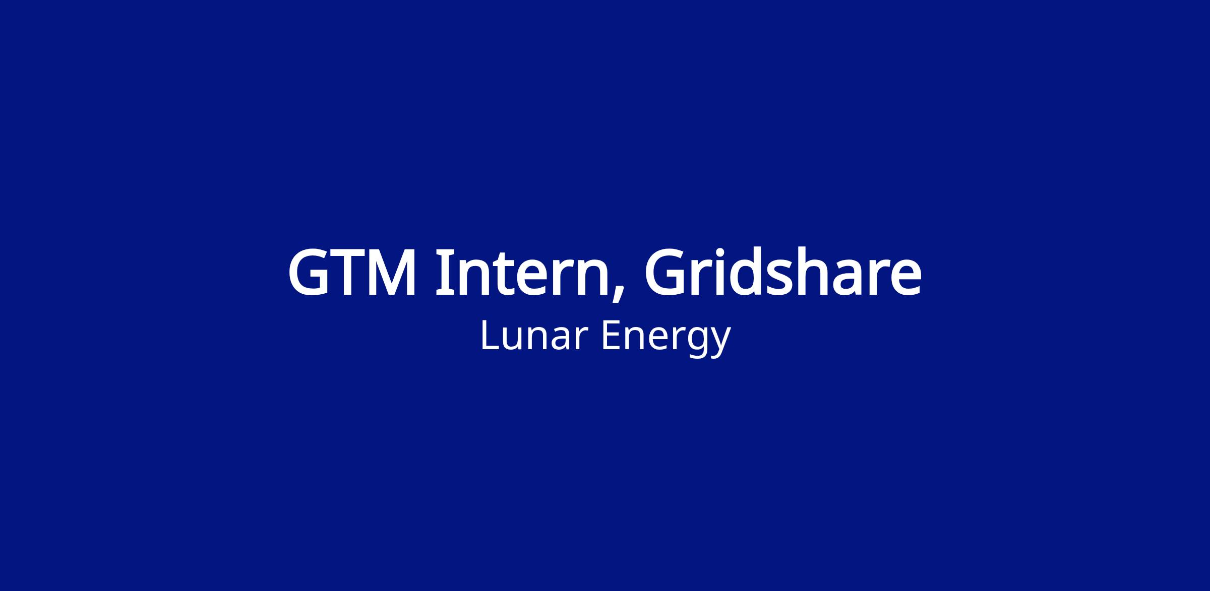 Lunar is looking for a self-starting intern to strengthen the GTM team of our software(-enabled) division, Gridshare. This role is a unique opportunity for an individual with a strategic and analytical mindset combined with commercial 'hustler' DNA. Reporting to the Director of Business Development & Partnerships