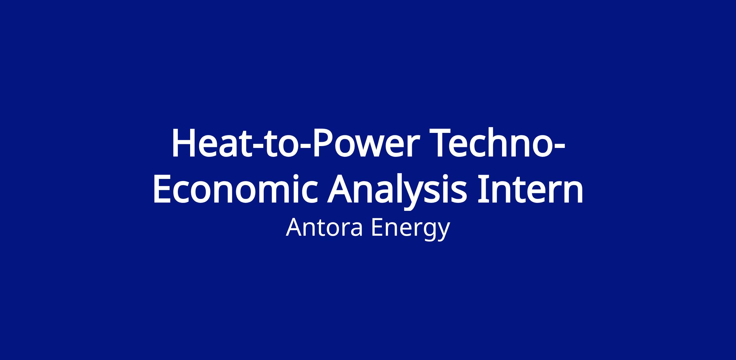 - Product insight: you will build and run techno-economic models that directly inform Antora’s power product architecture decisions — which heat-to-electricity conversion technologies to pursue, how to size them, and where they create the most value in U.S. electricity markets.