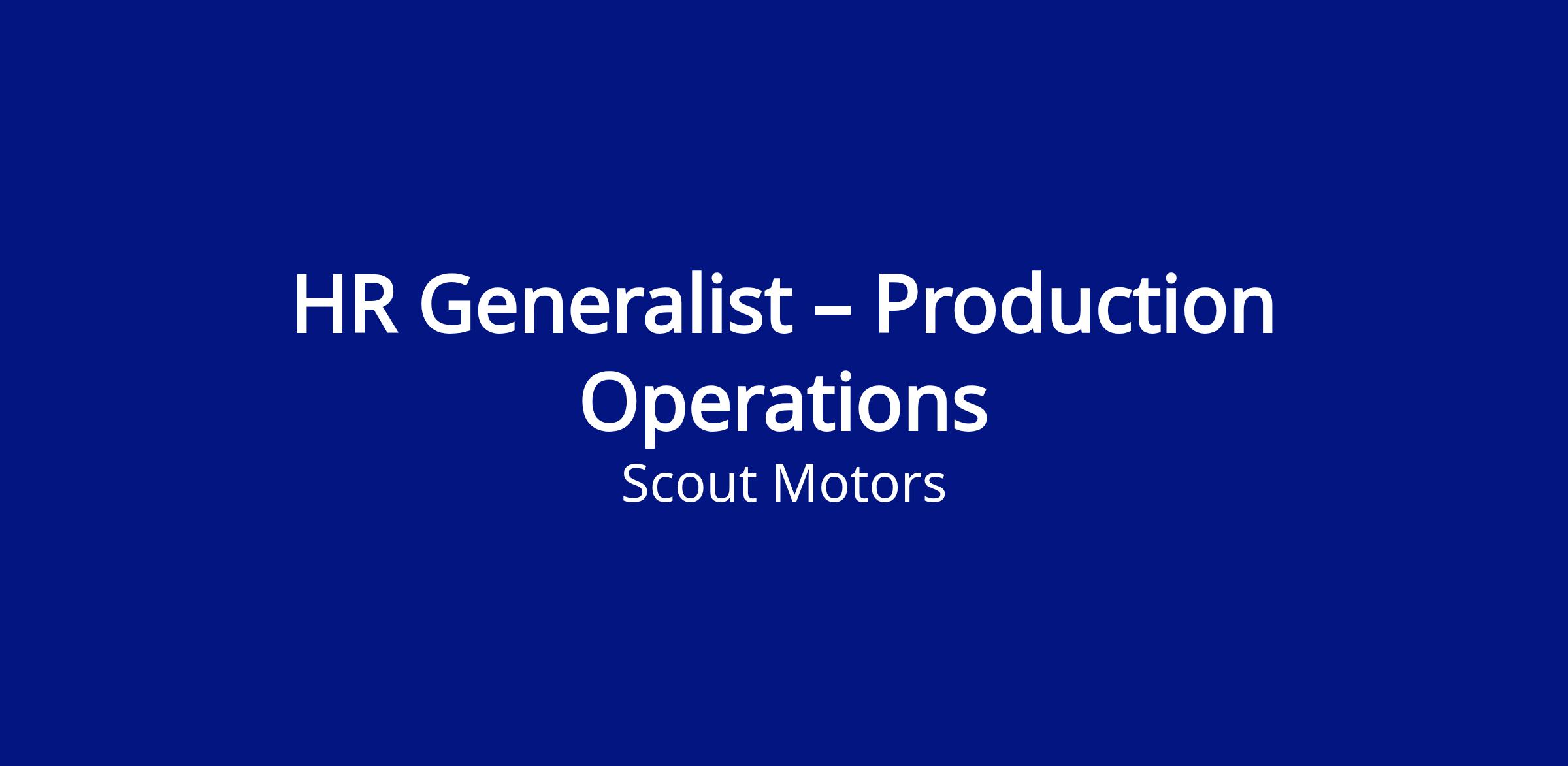 The Human Resources team at Scout supports an innovative, fast-growing organization focused on redefining the electric pick-up truck and rugged SUV marketplace. Within HR, the Production HR team is dedicated to supporting Production Center operations.
