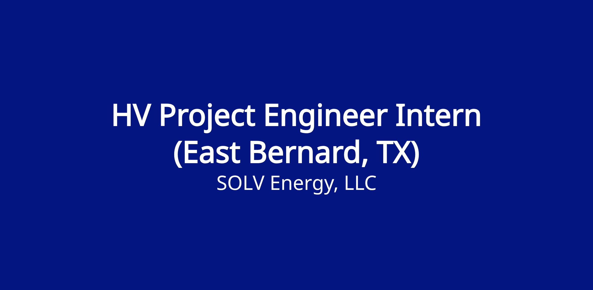 The Intern – HV Project Engineer intern (Field) supports the design, administration, and execution of high-voltage (HV) and EPC project activities to achieve project profitability, compliance, and schedule goals. This role provides hands-on experience across engineering, procurement, document control, commissioning, and field support for utility-scale solar and BESS projects.Job Description: