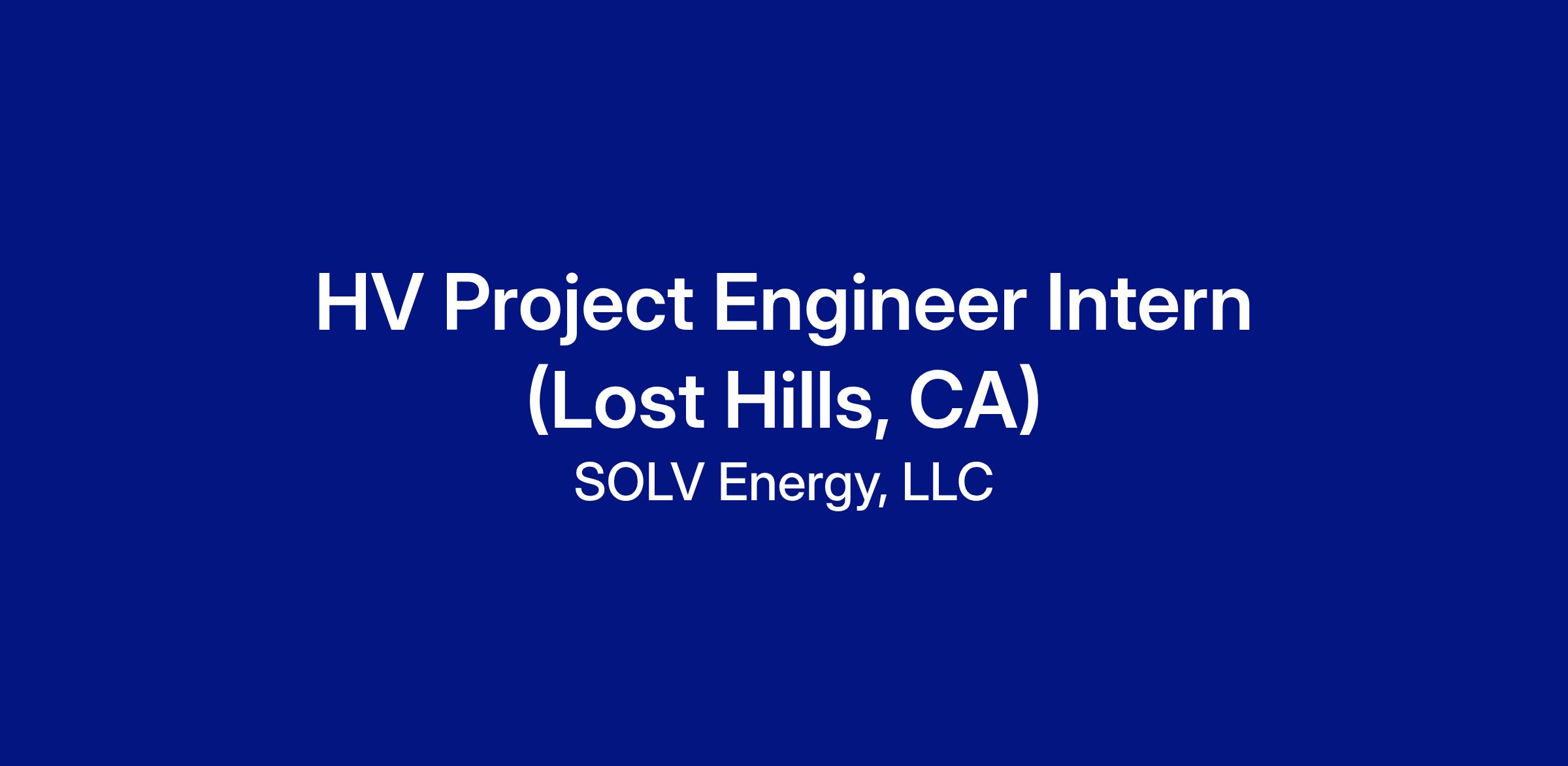 HV Project Engineer Intern (Lost Hills, CA)