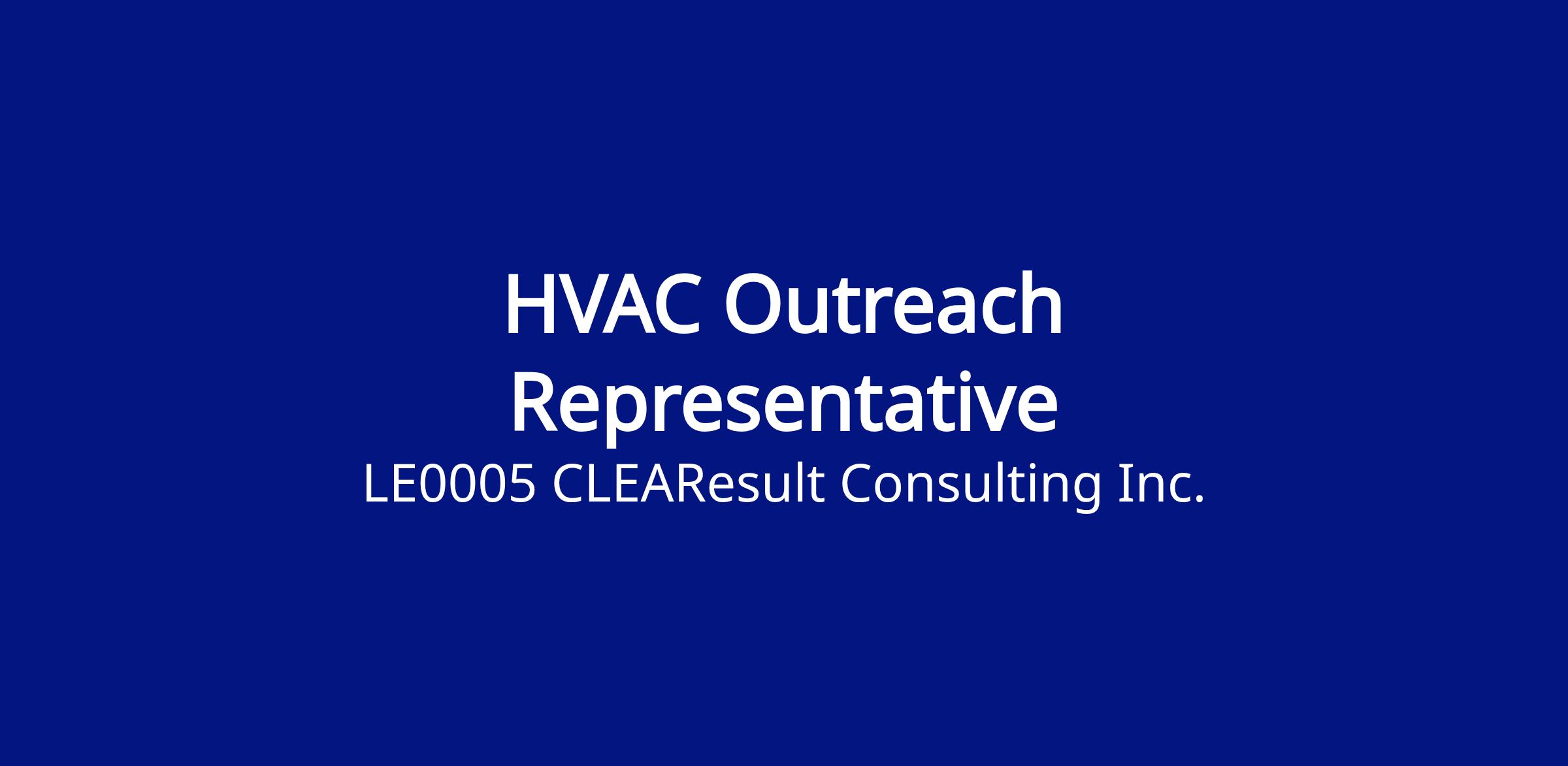 To join CLEAResult as a HVAC Outreach Representative! You will be responsible for developing an increased awareness in and adoption of targeted HVAC energy efficient technologies, strategic market development, customer satisfaction, as well as delivering on client goals related to outreach activity and energy savings.