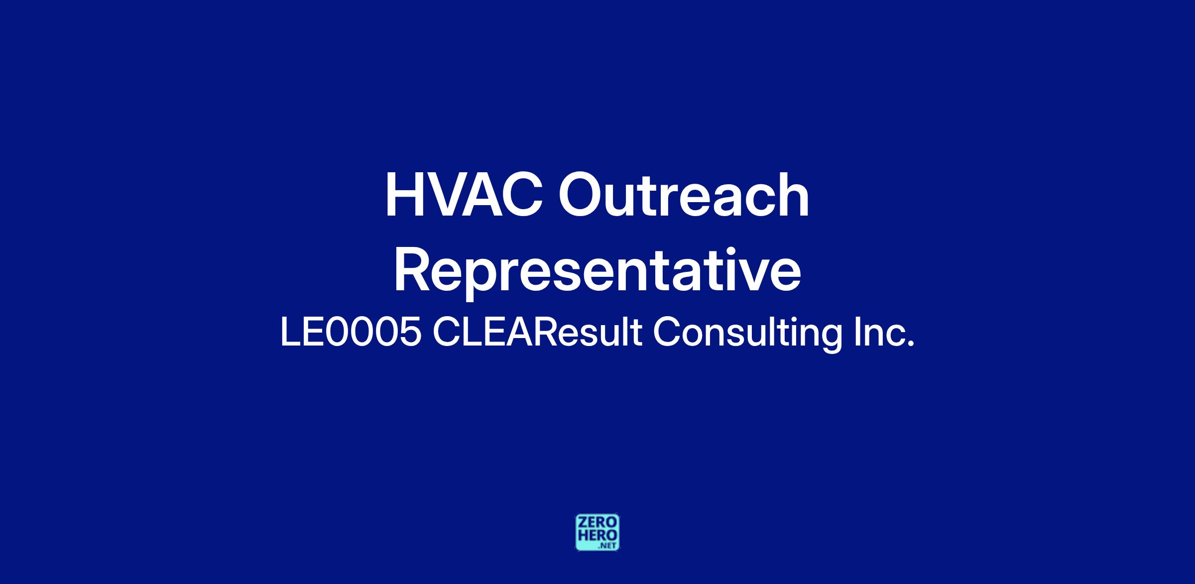 To join CLEAResult as a HVAC Outreach Representative! You will be responsible for developing an increased awareness in and adoption of targeted HVAC energy efficient technologies, strategic market development, customer satisfaction, as well as delivering on client goals related to outreach activity and energy savings.
