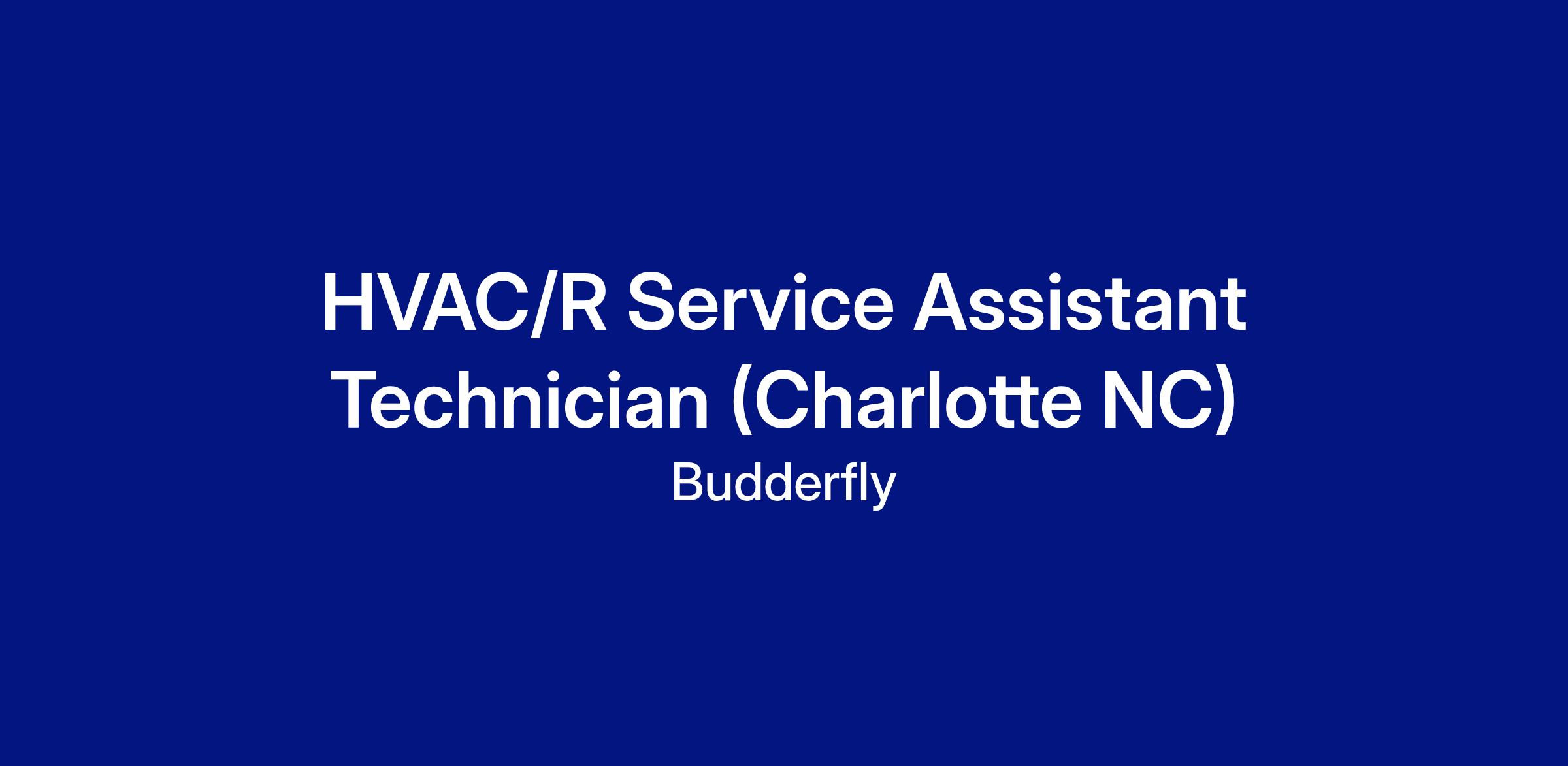 We have an entry level opportunity for a motivated individual to fill the role of a HVAC/R Service Assistant Technician in Charlotte, NC area (in our Energy Force LLC Division of Budderfly). In this position, the successful candidate will be responsible for ensuring optimal, efficient operation of the fleet of Budderfly HVAC Units