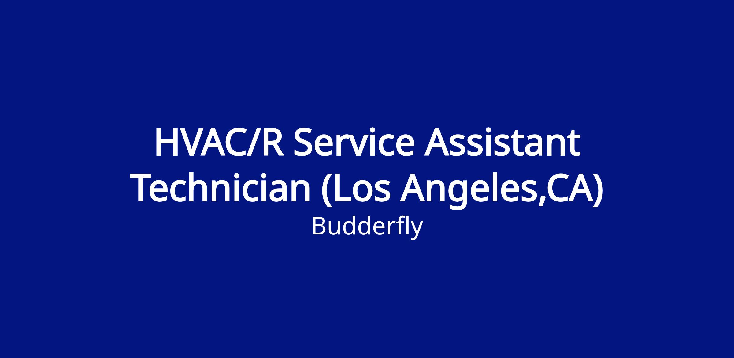 We have an entry level opportunity for a motivated individual to fill the role of a HVAC/R Service Assistant Technician in Los Angeles, CA  area (in our Energy Force LLC Division of Budderfly). In this position, the successful candidate will be responsible for ensuring optimal, efficient operation of the fleet of Budderfly HVAC Units