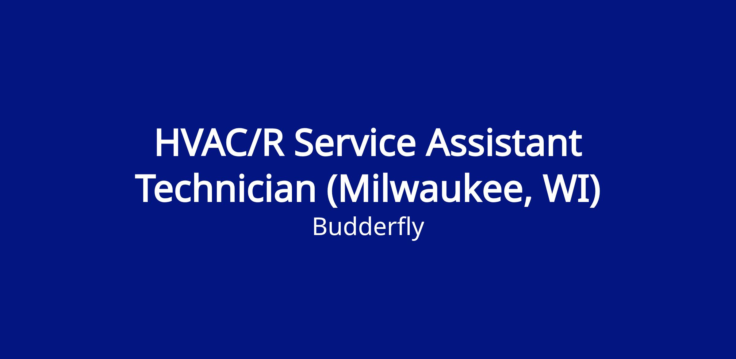 We have an entry level opportunity for a motivated individual to fill the role of a HVAC/R Service Assistant Technician in Milwaukee, KY area (in our Energy Force LLC Division of Budderfly). In this position, the successful candidate will be responsible for ensuring optimal, efficient operation of the fleet of Budderfly HVAC Units