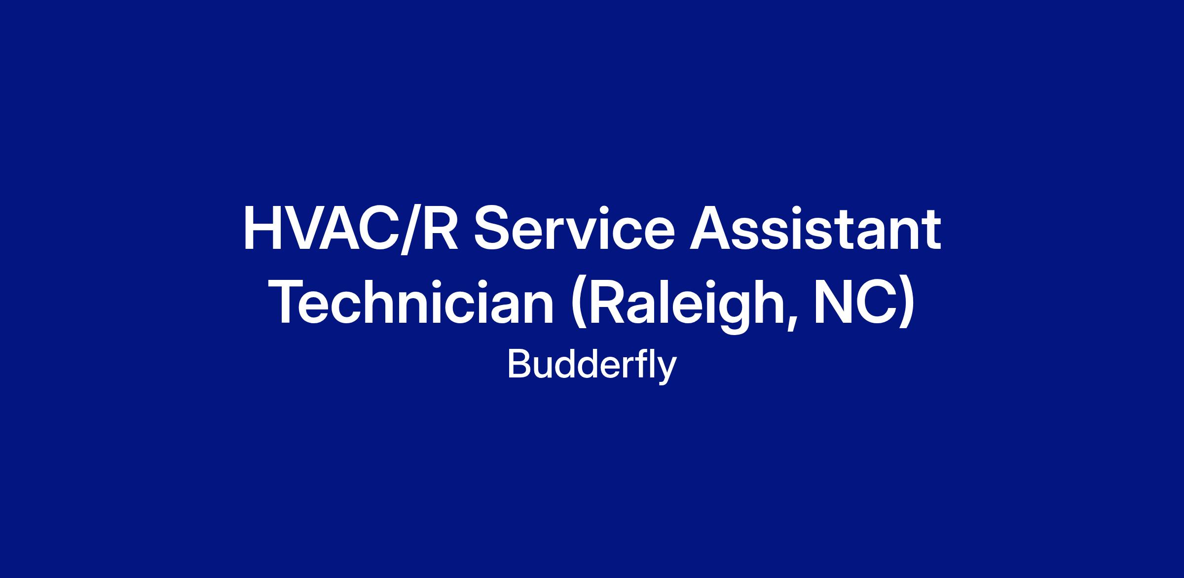 We have an entry level opportunity for a motivated individual to fill the role of a HVAC/R Service Assistant Technician in Raleigh, NC area (in our Energy Force LLC Division of Budderfly). In this position, the successful candidate will be responsible for ensuring optimal, efficient operation of the fleet of Budderfly HVAC Units
