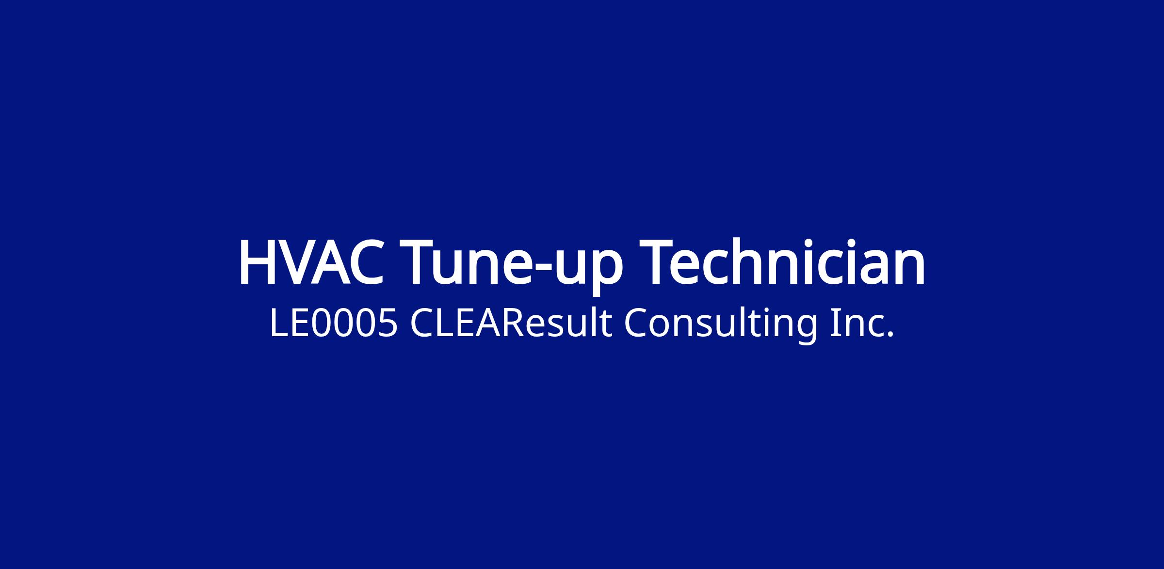 We are looking for a talented individual to join CLEAResult as an HVAC Tune‑Up Technician. As an HVAC Tune‑Up Technician, you will play a critical role in performing multi‑step HVAC tune‑ups, ensuring high‑quality service to residential customers, and representing CLEAResult and our utility client in the field.