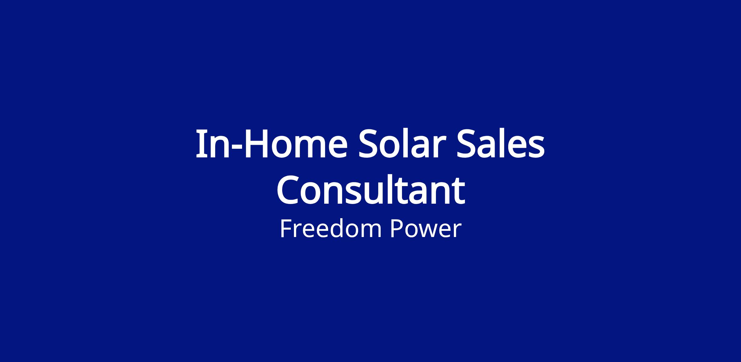 Freedom Solar is looking to add to our growing sales team with an In-Home Solar Design Consultant. We want hungry, passionate, and results-driven Sales Consultants to join us! You will educate, qualify, and advise future customers on the benefits of smart energy conservation and consumption practices. This is a commission-based opportunity.