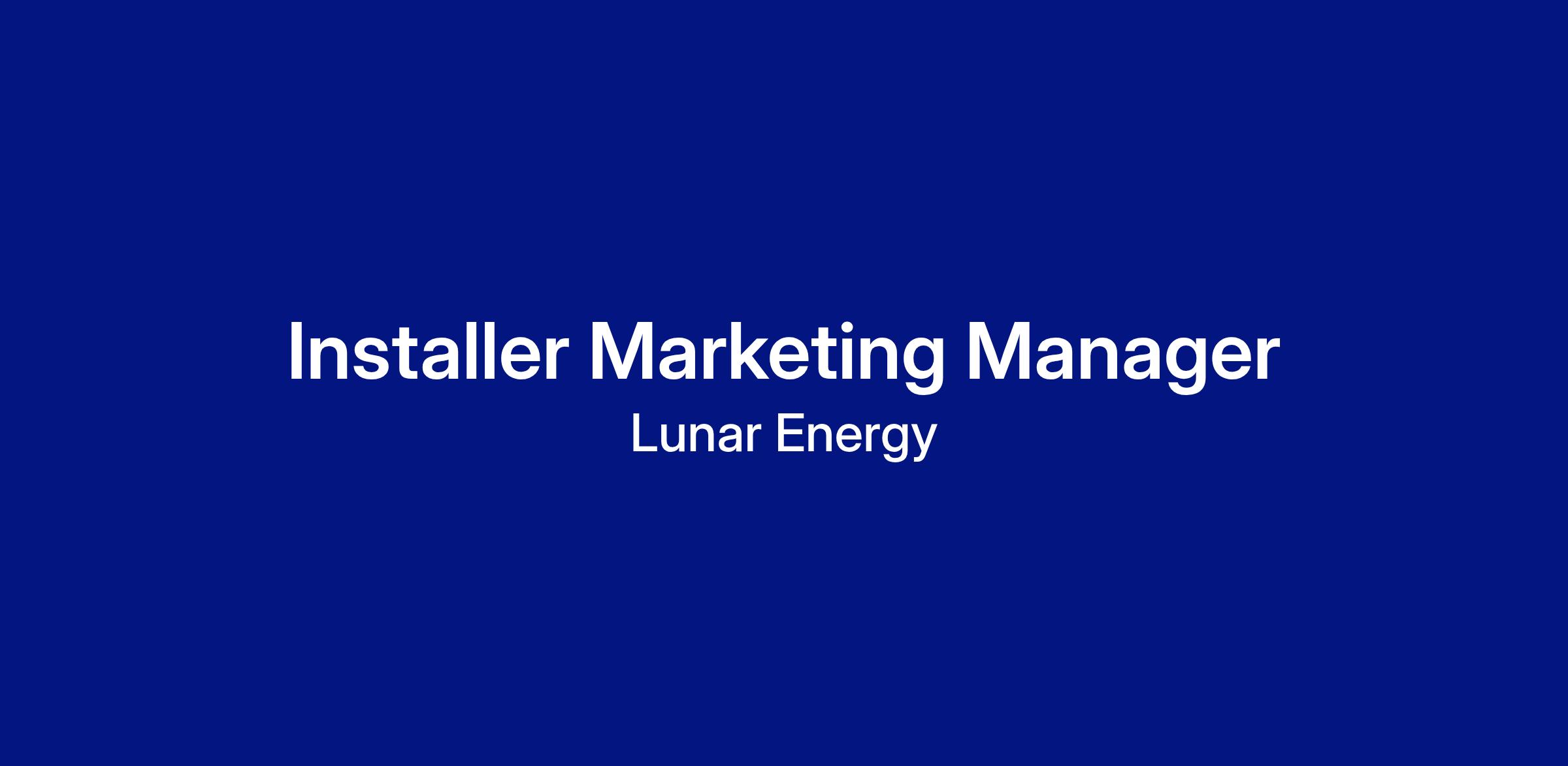 We're looking for a Installer Marketing Manager to lead our installer partner growth and enablement strategy during a pivotal expansion phase. You'll be joining early enough to shape how we scale our channel marketing program, building the playbooks and systems that will support Lunar's growth in new and existing regions across the country.