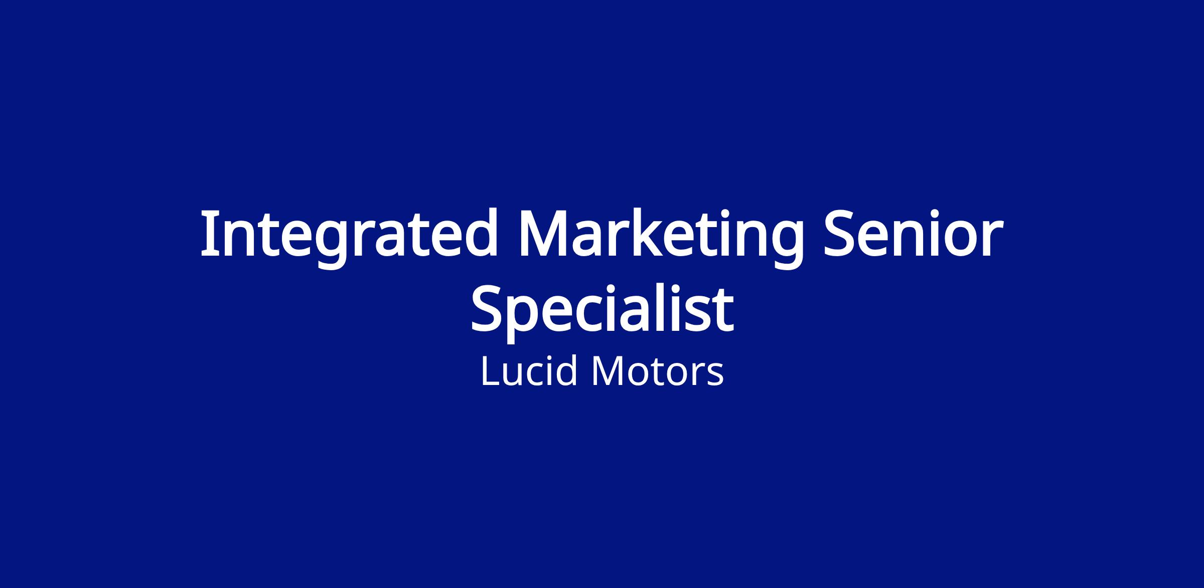 To all recruitment agencies: Lucid Motors does not accept agency resumes. Please do not forward resumes to our careers alias or other Lucid Motors employees. Lucid Motors is not responsible for any fees related to unsolicited resumes.