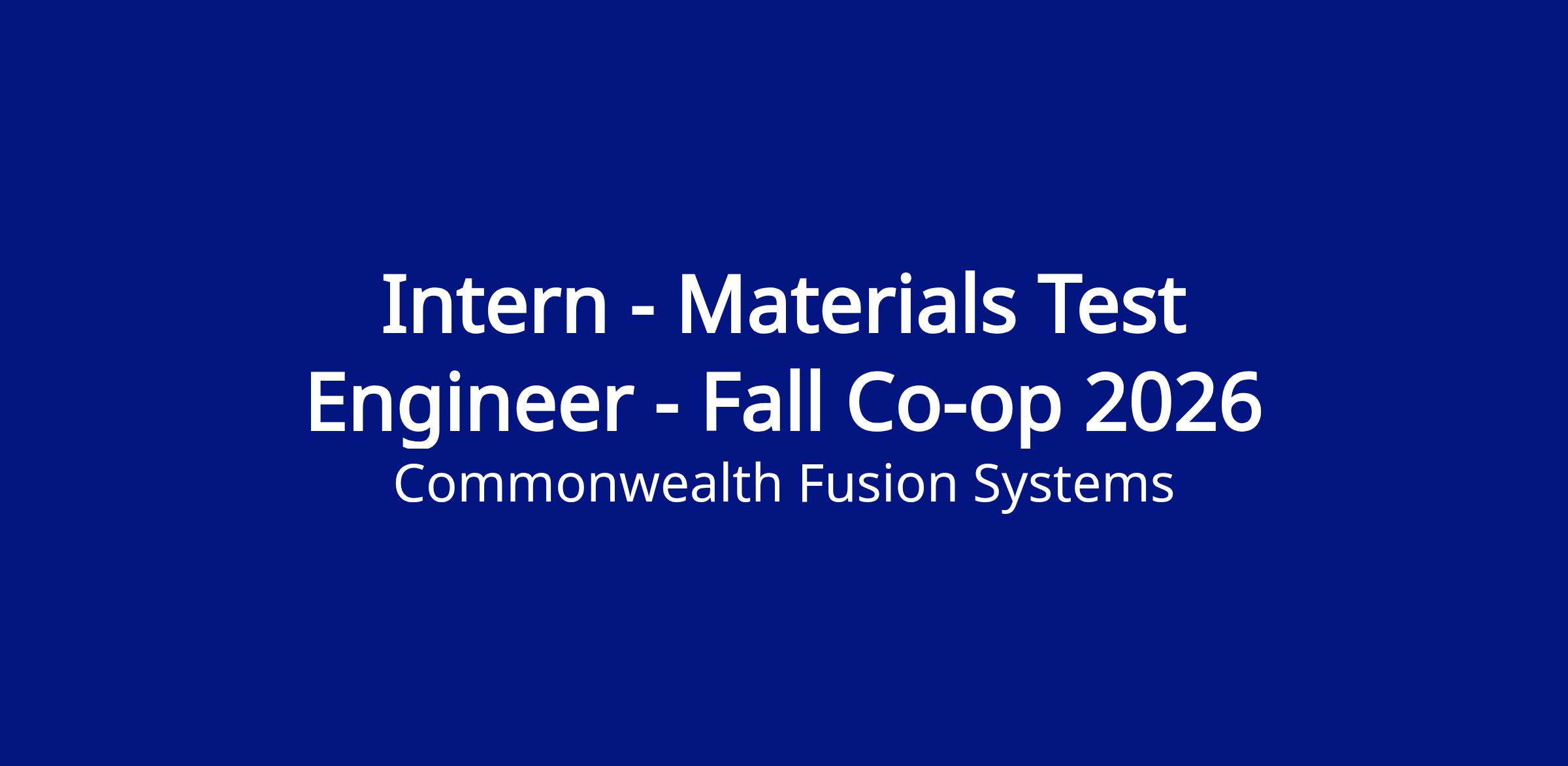 The CFS Materials Team is seeking a motivated Materials Test Engineering Intern to join our cutting-edge team. In this role, you will support the development and testing of advanced materials critical to key tokamak systems such as plasma-facing components, the vacuum vessel, and high field magnets. This is a unique opportunity to work at the forefront of sustainable energy innovation in a collaborative, fast-paced R&D environment.