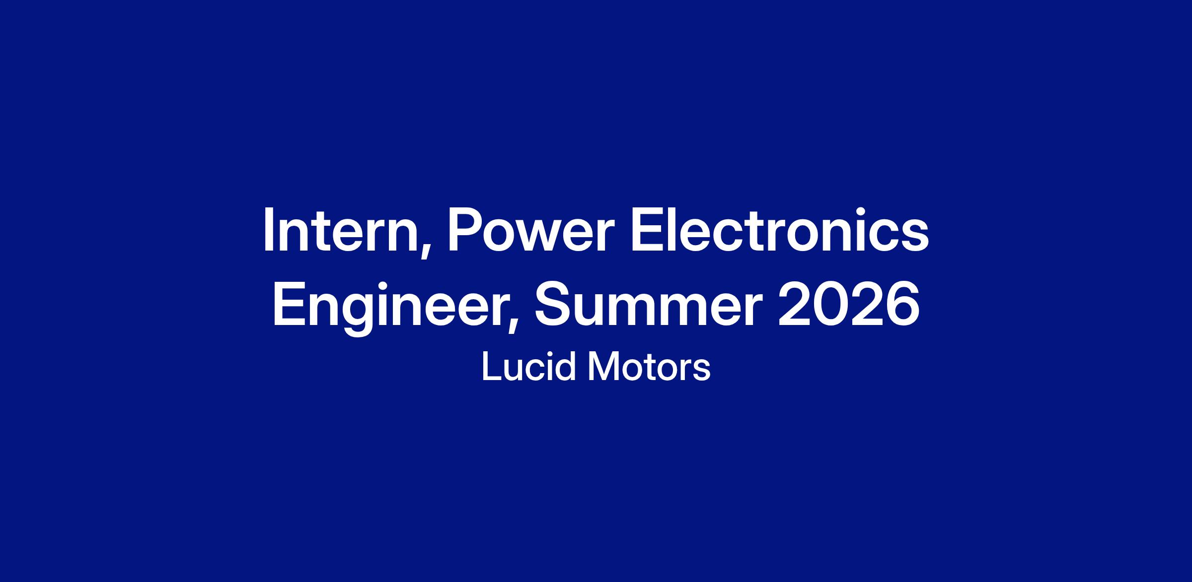 We are currently seeking a Power Electronics Intern for our team. This position requires a talented engineer with passion and experience to develop and test electrical designs. Our ideal candidate exhibits a can-do attitude and approaches their work with vigor and determination. Candidates will be expected to demonstrate excellence in their respective fields, to possess the ability to learn quickly and to strive for perfection within a fast-paced environment.