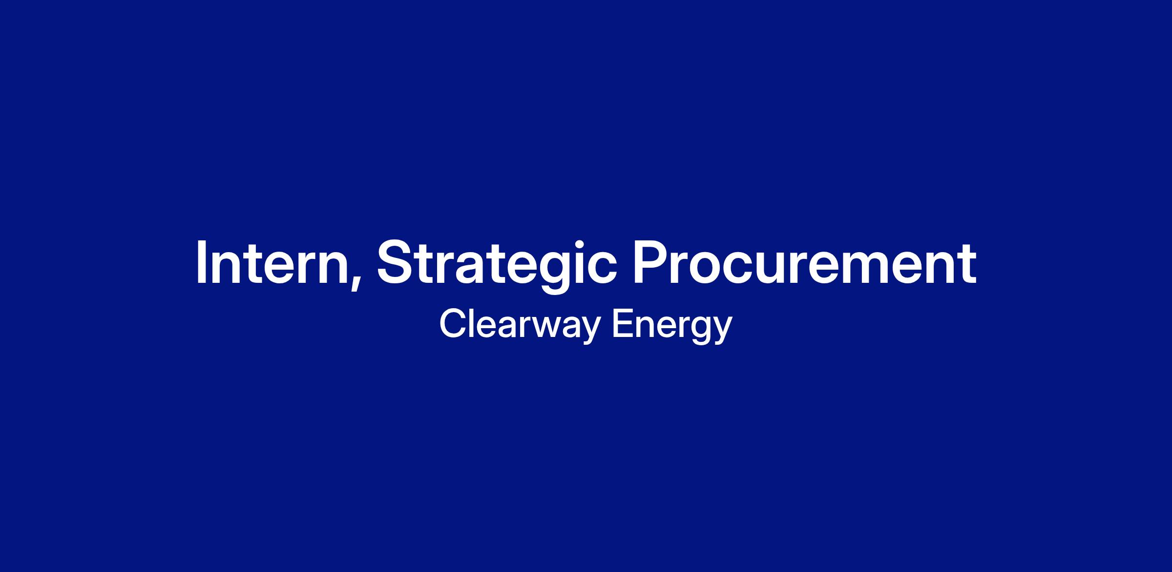 The Intern, Strategic Procurement (BESS) role will be part of the Clearway Strategic Procurement group and will report to the BESS Strategic Sourcing Manager. The Strategic Procurement group is responsible for categories of procurement with high spend, high risk, and that are critical to project outcomes.
