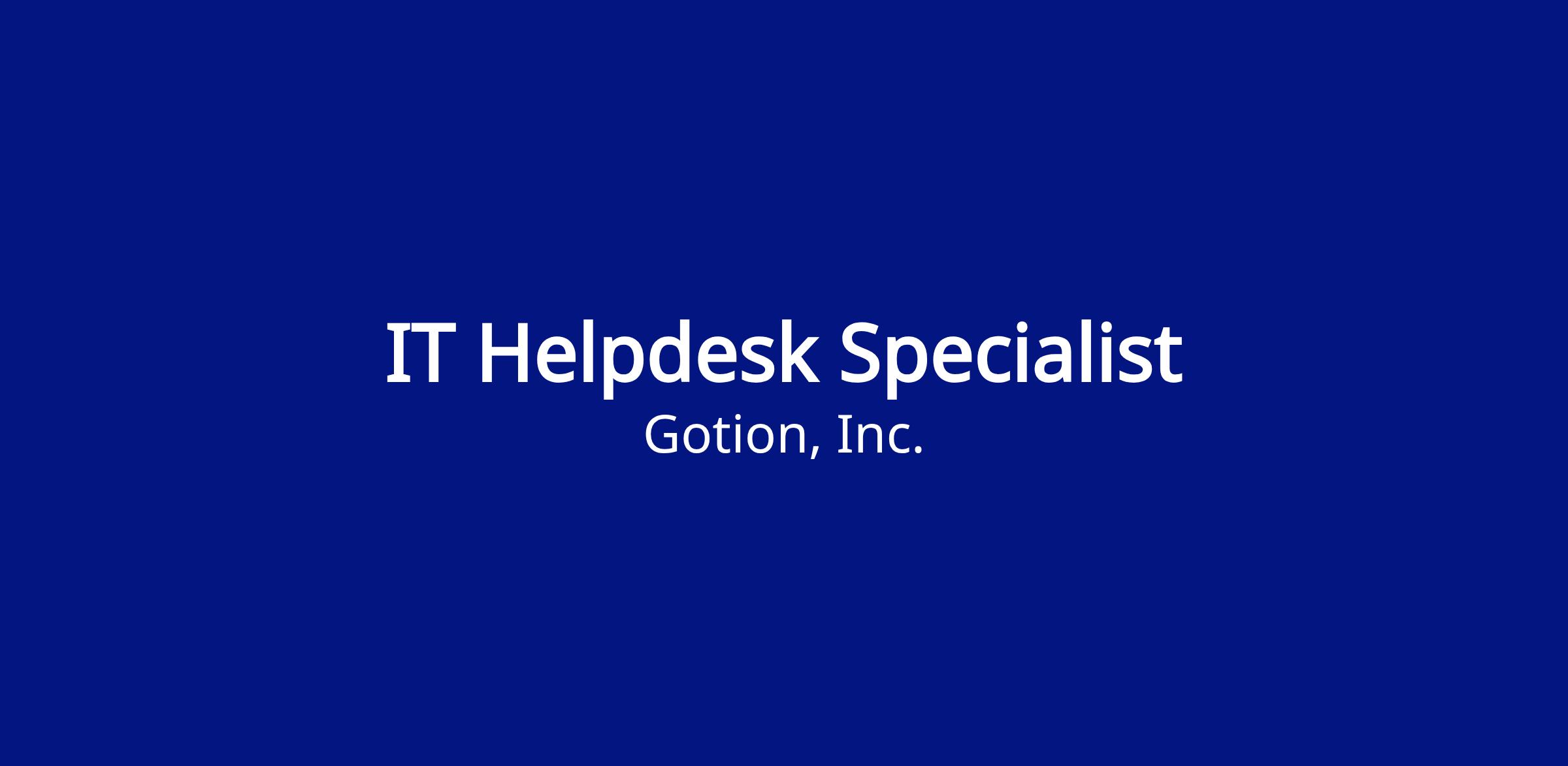 The IT Helpdesk Specialist serves as the first point of contact for all internal technical support requests. This role is responsible for diagnosing, troubleshooting, and resolving hardware, software, and network issues while delivering excellent customer service to end users. The ideal candidate is responsive, detail-oriented, and able to communicate technical solutions in a clear, user-friendly manner.