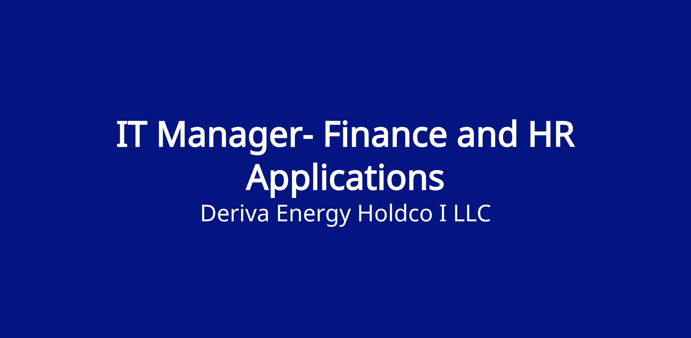 Deriva Energy is seeking an experienced and hands-on IT Manager, Finance and HR Applications to lead the support, optimization, and strategic evolution of the company’s financial and HR application portfolio. This role is accountable for the stability, compliance, and continuous improvement of mission-critical platforms supporting finance, accounting, treasury, procurement, tax, and HR functions across the enterprise.