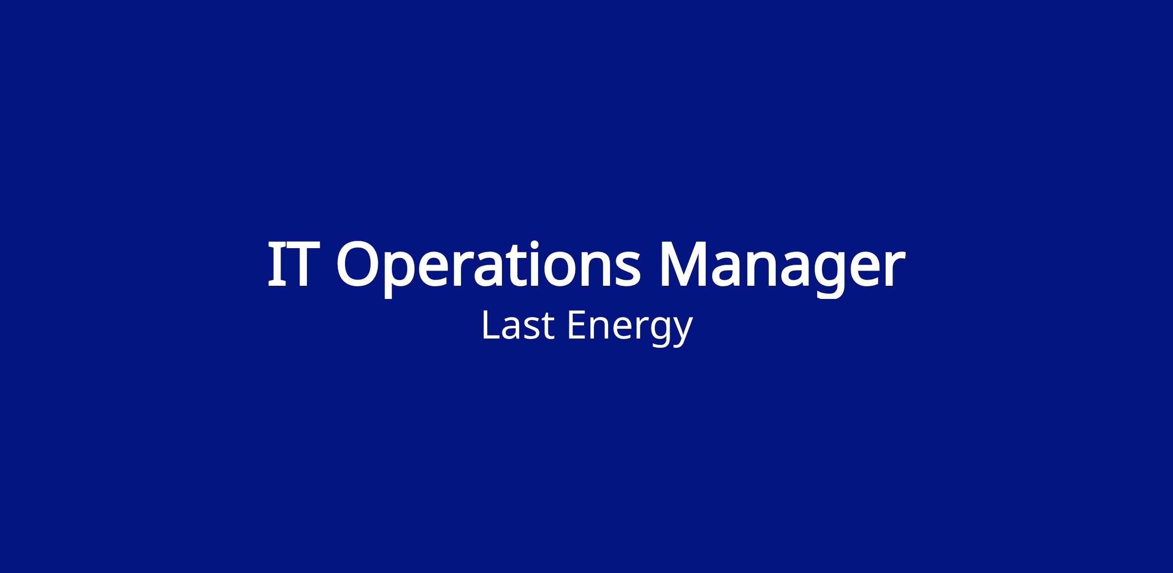 The IT Operations Manager is a senior individual contributor responsible for stabilizing, securing, and evolving Last Energy’s IT operational foundation. This role focuses on hands-on execution across infrastructure, identity, endpoint management, and operational processes, enabling the IT function to scale securely in a high-growth, regulated environment.