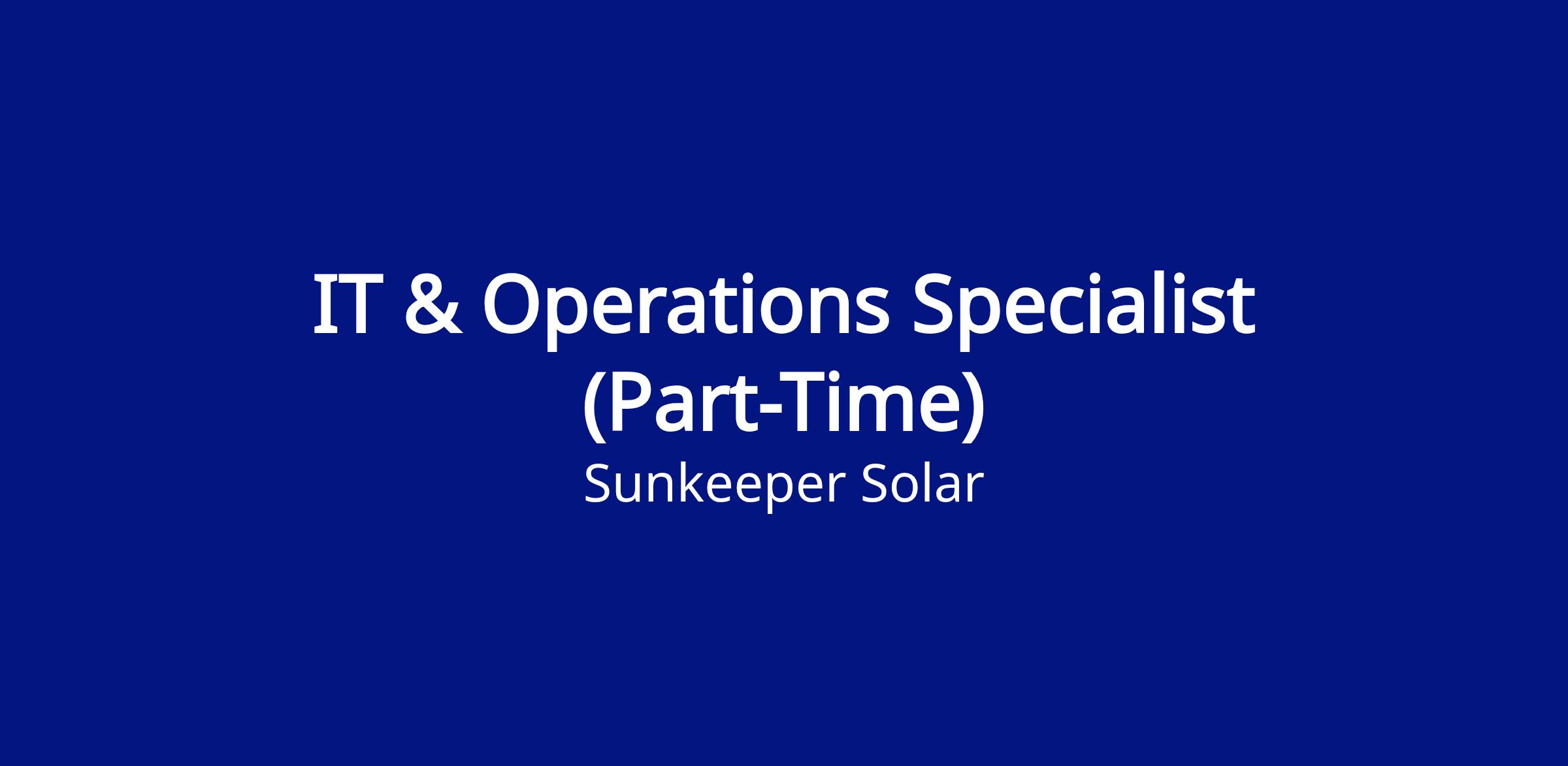 Sunkeeper Solar’s IT & Operations Specialist - (Part-Time) will play a key role in delivering the efficiency and security of Sunkeeper Solar’s techstack. The ideal candidate will have 1-3 years’ experience in IT operations, be interested to learn about renewable energy in New York City, and be excited to work in a dynamic environment.