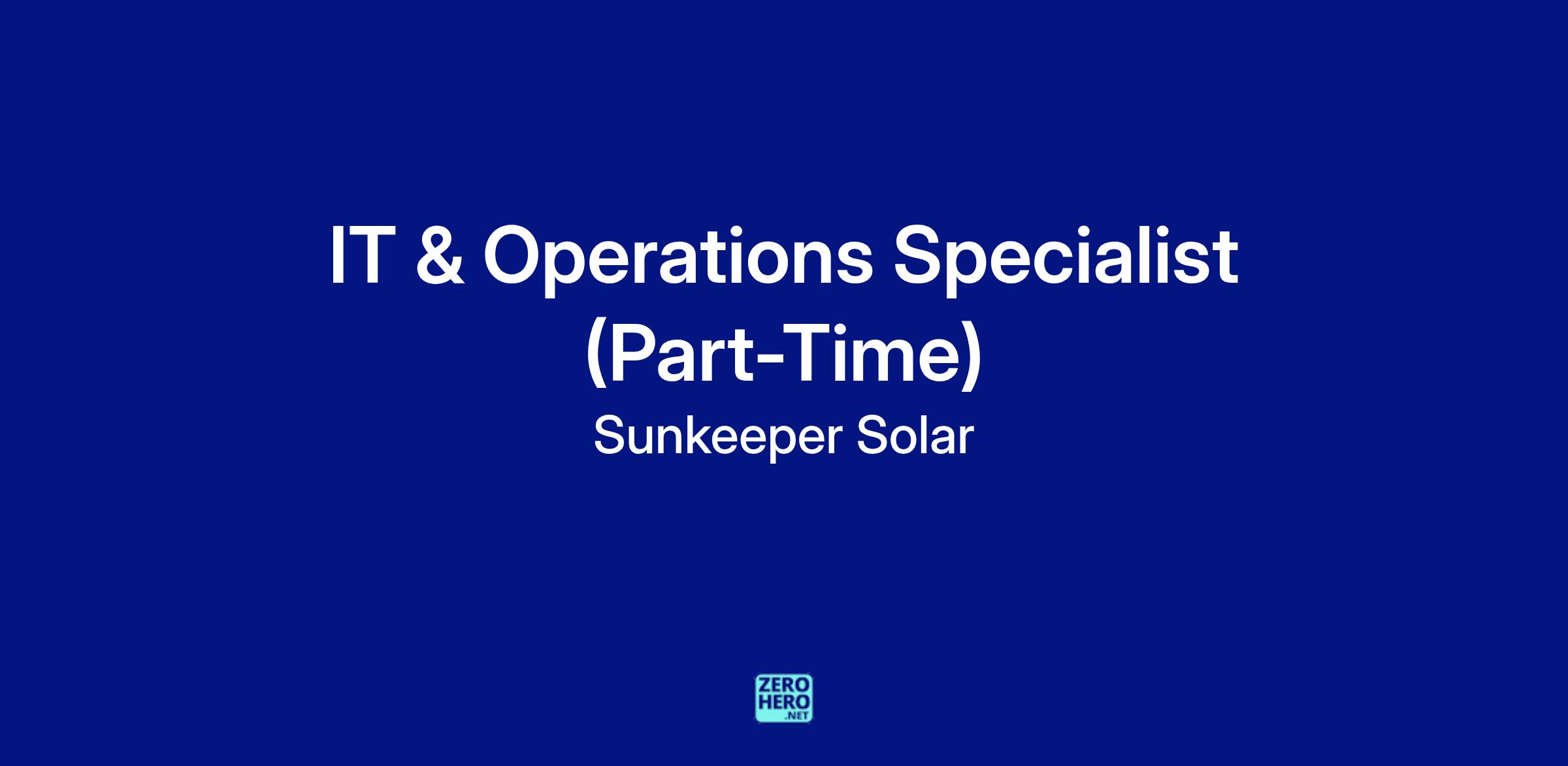 Responsibilities: Sunkeeper is a fast-paced and growing company, and applicants for the IT & Operations Specialist position should be flexible and be prepared for a dynamic set of tasks.