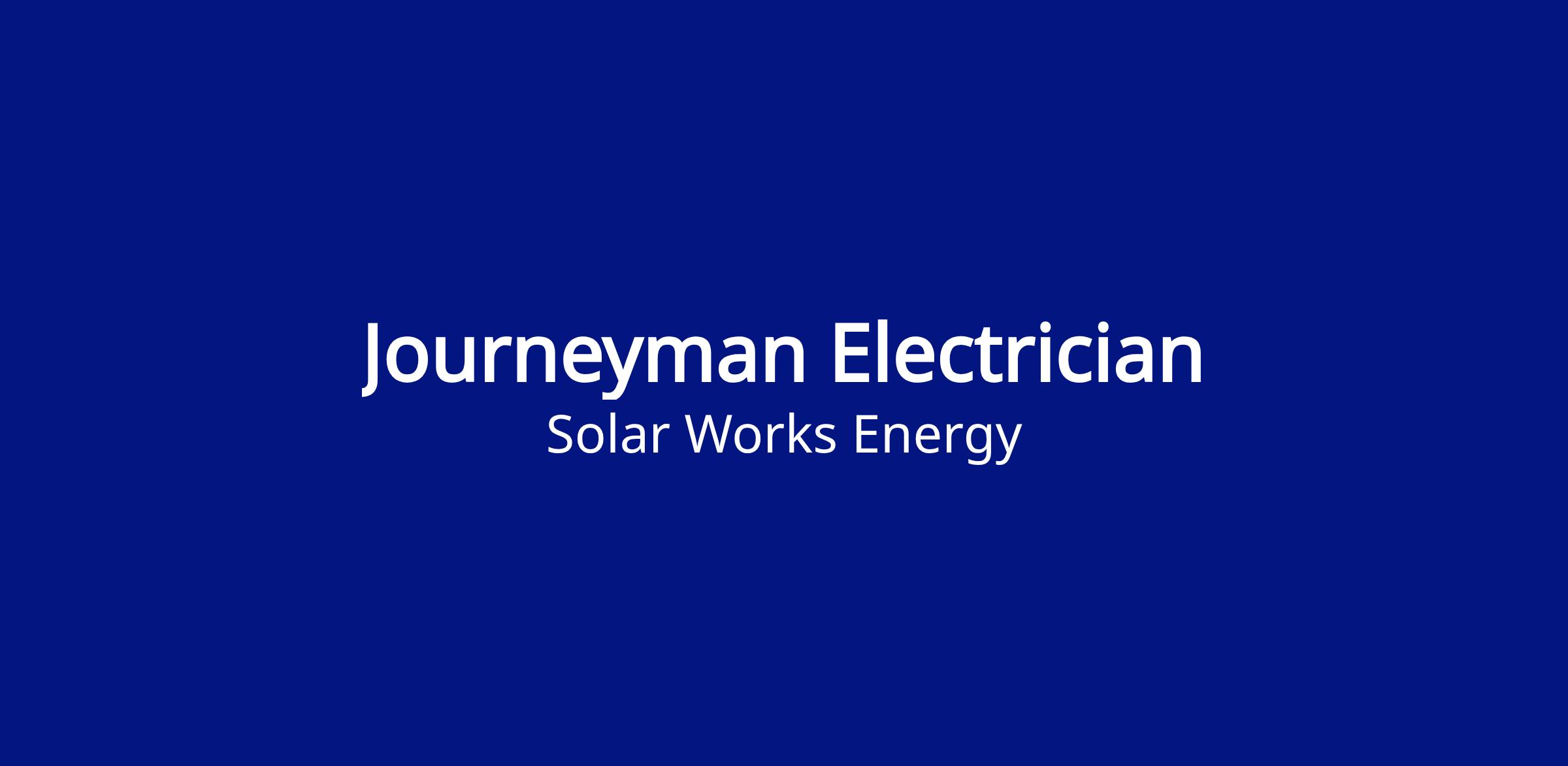 Join <\/span>Solar Works Energy<\/b>, the largest residential solar installer in New Mexico! We are looking for a licensed <\/span>Journeyman Electrician<\/b> <\/span>to help us continue delivering top -tier solar energy solutions to our customers. This is your opportunity to work with a fast -growing company in the solar industry, providing stable employment and opportunities for advancement.