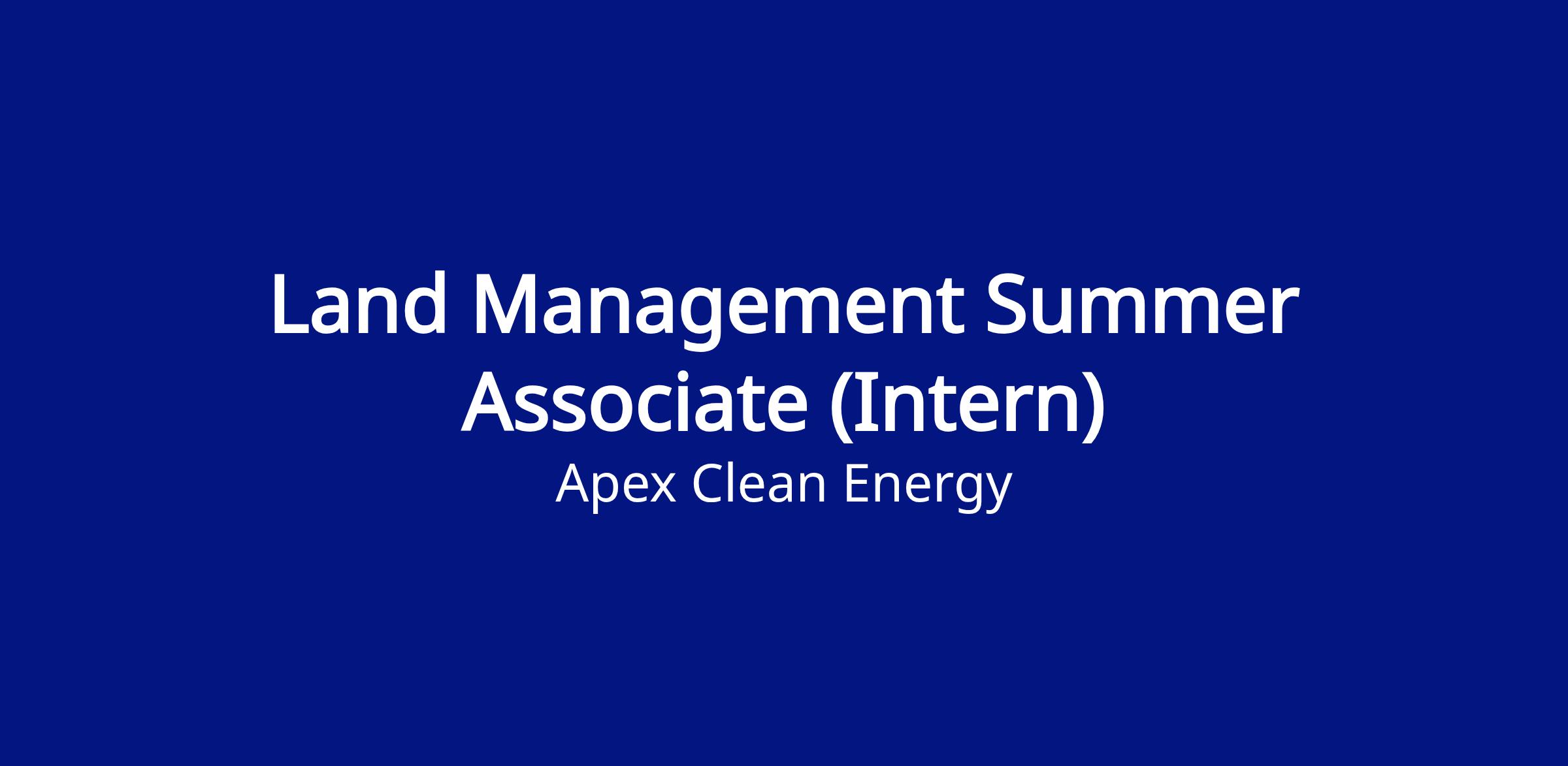 Apex Clean Energy, Inc. is an Equal Opportunity Employer that recruits and hires qualified candidates without regard to race, color, religion, sex, sexual orientation, gender identity, age, national origin, ancestry, citizenship, disability, or veteran status.
