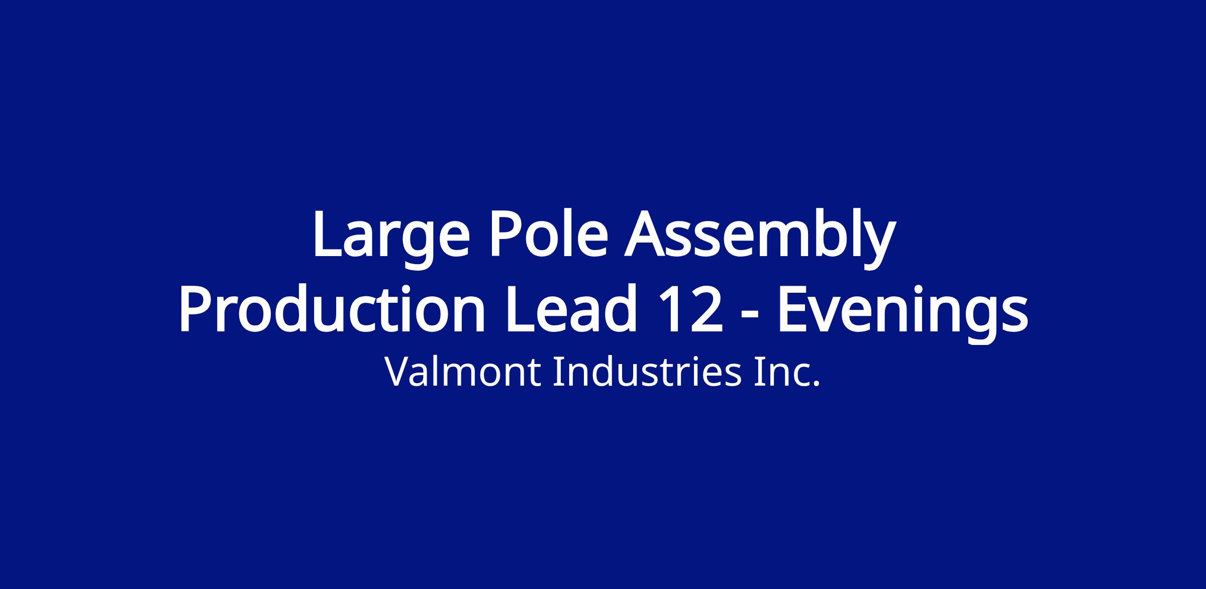 The primary role of the Production Lead 12 is to work closely with the Production Supervisor and Production Manager, peers, and other departments to contribute to Valmont’s overall success. The Production Lead must be a person of passion and integrity who has the drive to excel and deliver exceptional results. This position reports directly to the Production Supervisor and is responsible for driving the Safety, Quality, Delivery, and Cost metrics in the Shop. Effective communication, leadership, teamwork and motivation with all employees while adhering to Valmont’s standards, policies, and procedures are critical for this role.