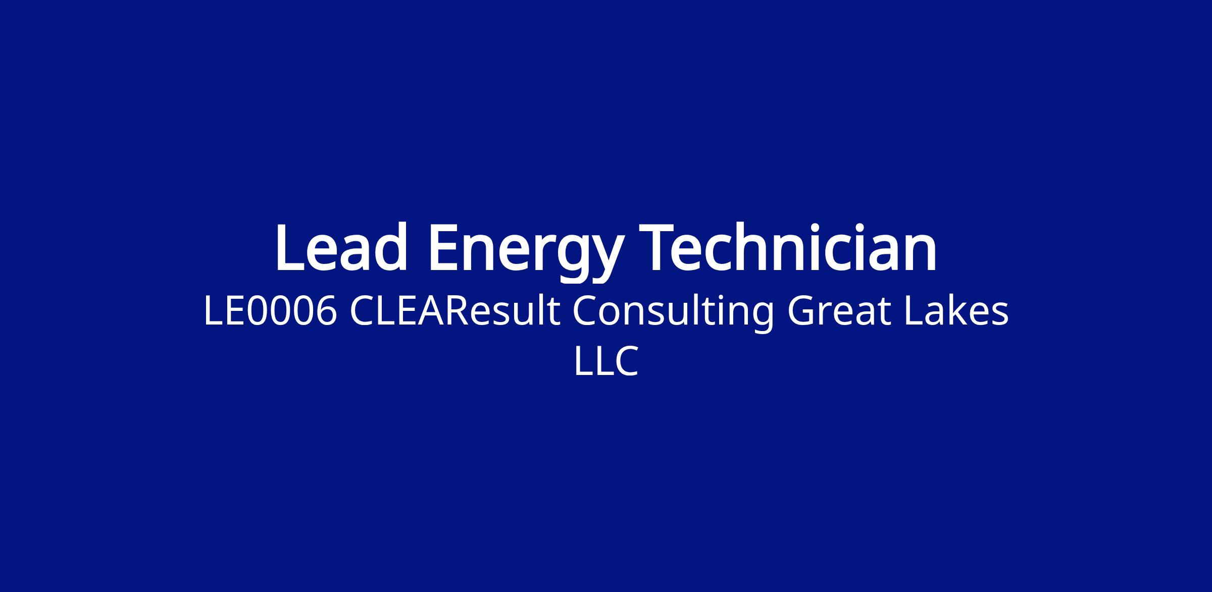 To join our team as a Lead Energy Technician! In this role will act as a local on-site program and company representative to residential customers and educating them on energy waste reduction.