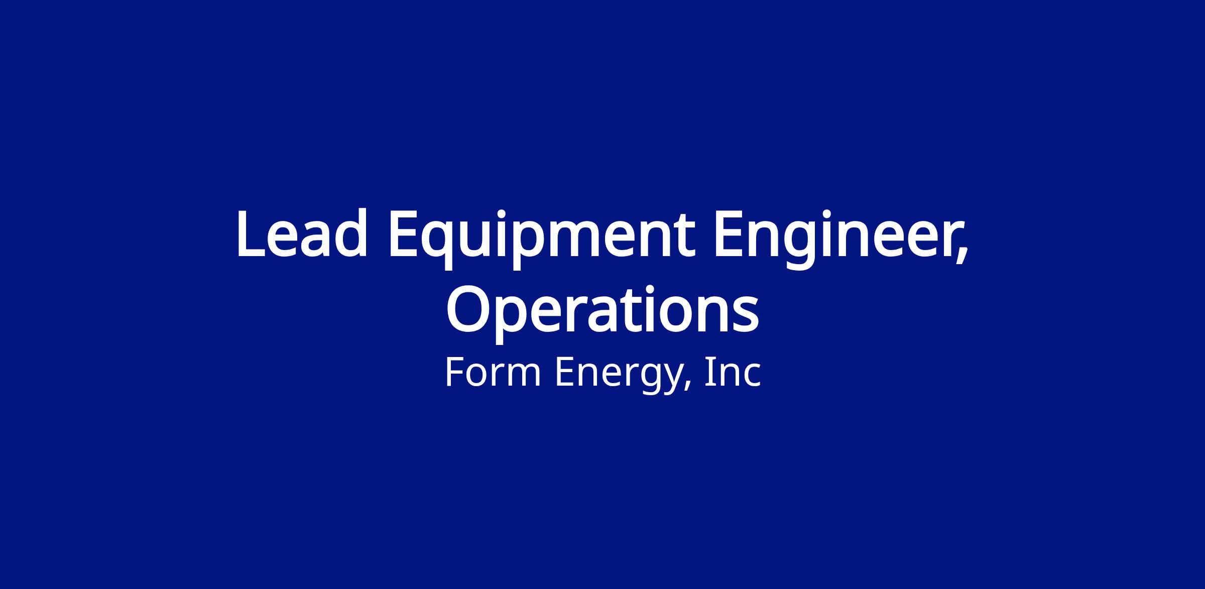 We’re looking for a Lead (Staff) Equipment Engineer to join our Operations Engineering team. In this role, you will use your deep familiarity with a variety of manufacturing equipment to lead the ramp up of production while maintaining quality. From assisting in commissioning to developing maintenance strategies, you will be responsible for optimizing and owning first-of-its-kind equipment. You will drive the identification and resolution of issues and lead the design of creative tooling that minimizes downtime and enables a highly efficient process. This is a fantastic opportunity to make a direct impact in the production of Form Energy’s revolutionary energy storage solutions.
