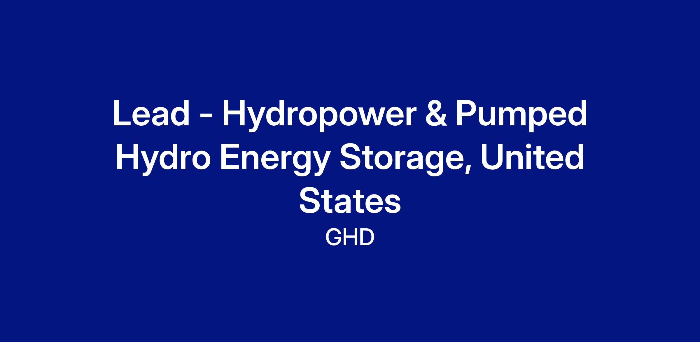 GHD North America is seeking a Lead — Hydropower & Pumped Hydro Energy Storage (PHES) to shape our hydropower and long‑duration storage growth across the United States