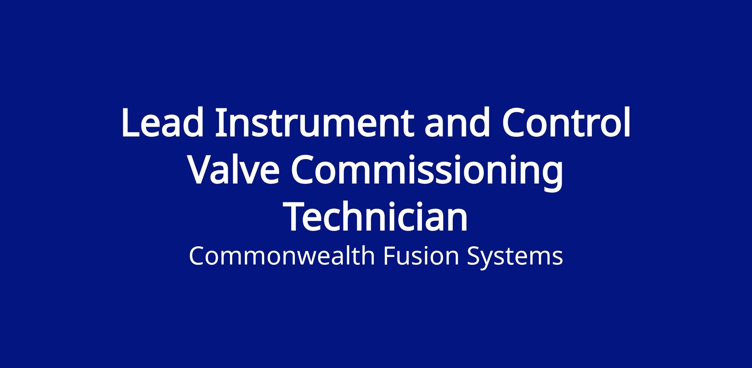 Join the power movement as a Lead Instrument and Control Valve Commissioning Technician